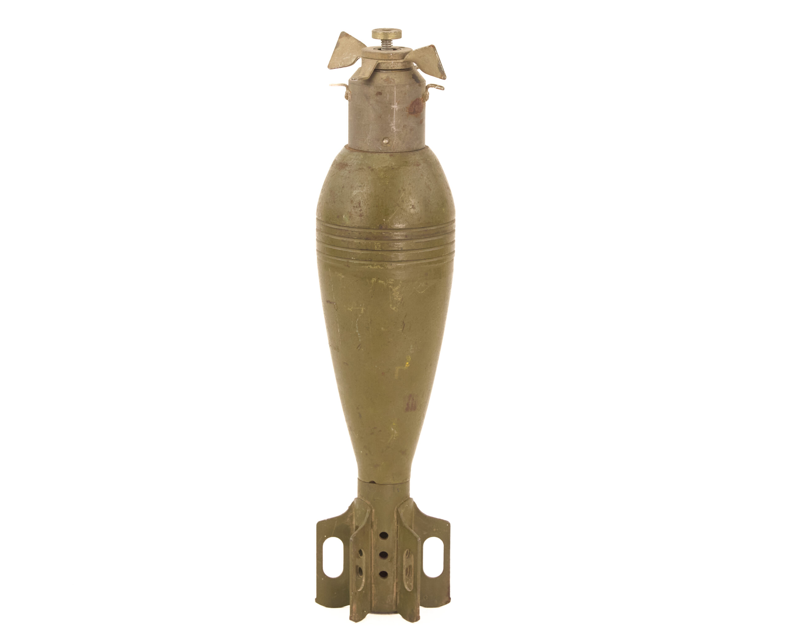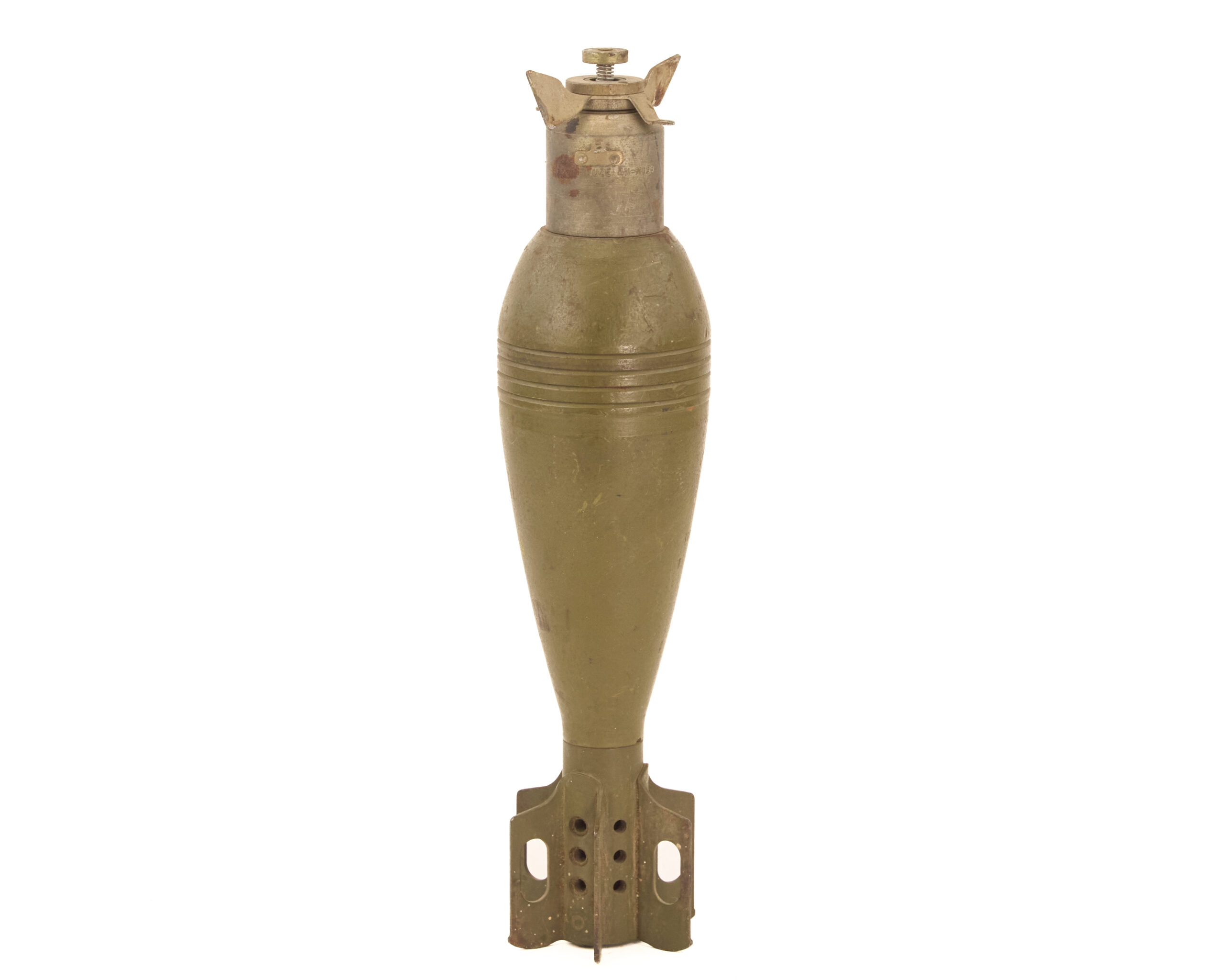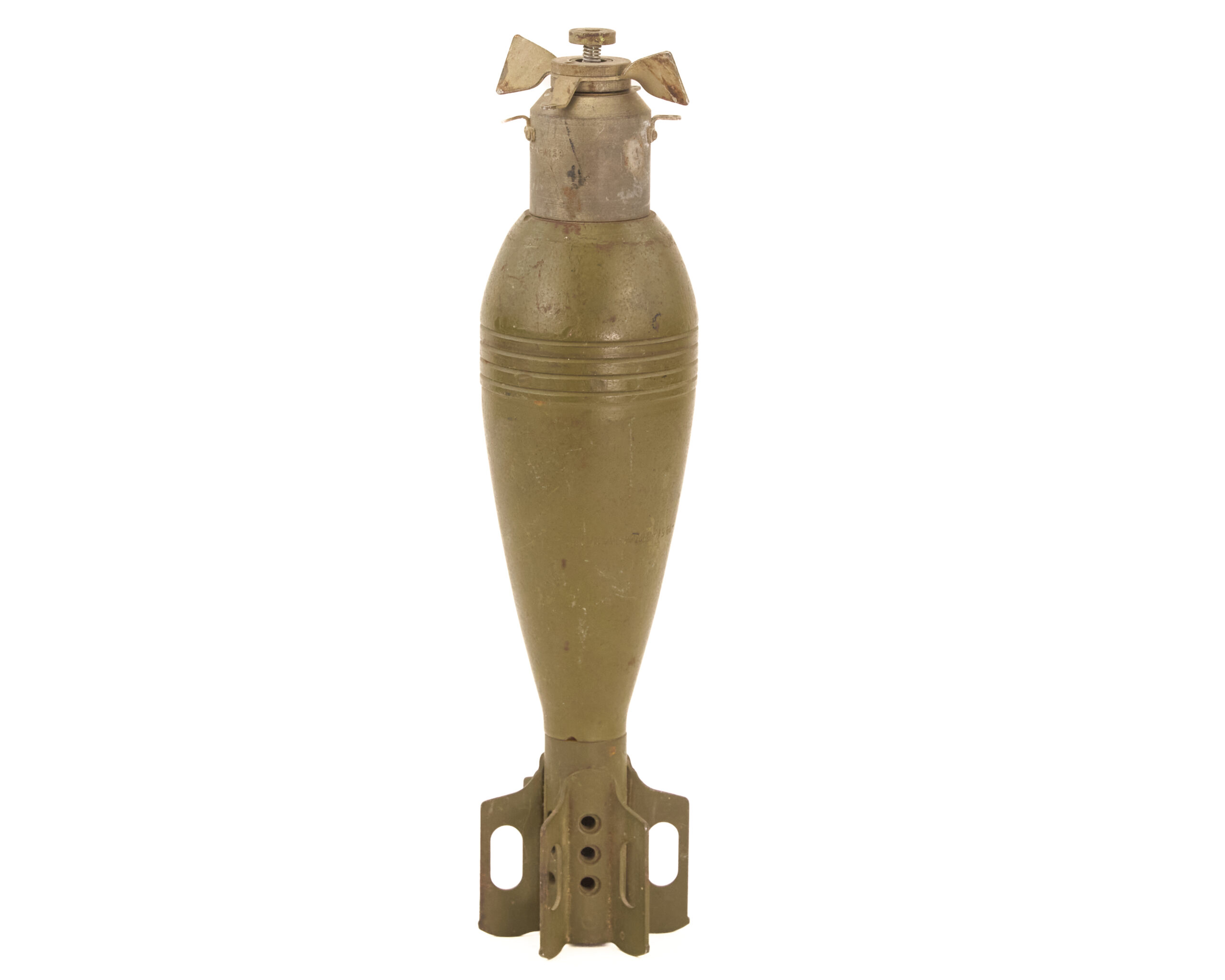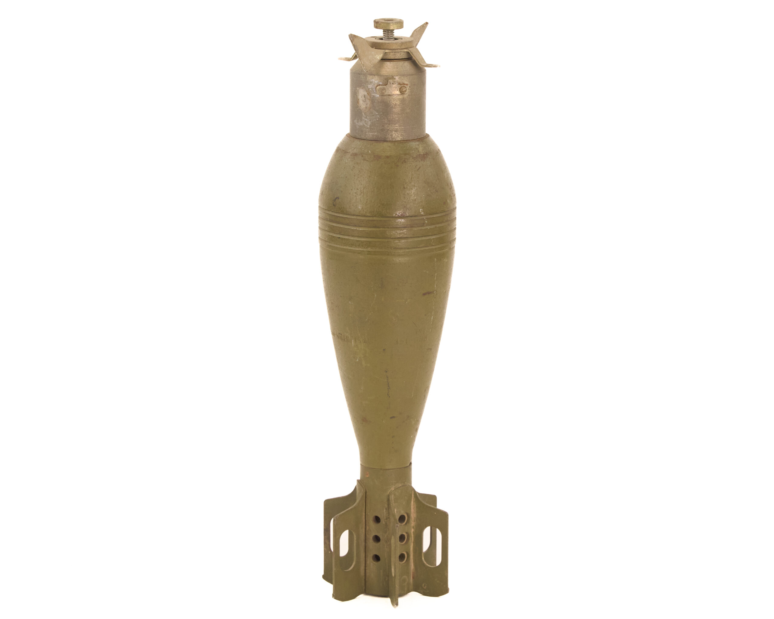 The 81mm mortar occupied an important place in 20th-century infantry doctrine because it offered portable indirect fire without the logistical burden of full artillery. That is part of what gives a round like this its appeal. It represents the ammunition end of one of the most practical support weapons carried close to the infantry line. Mortars filled the space between small arms and heavier artillery by giving units a weapon that could drop explosive fire behind cover, into reverse slopes, and onto positions that direct-fire weapons could not reach.