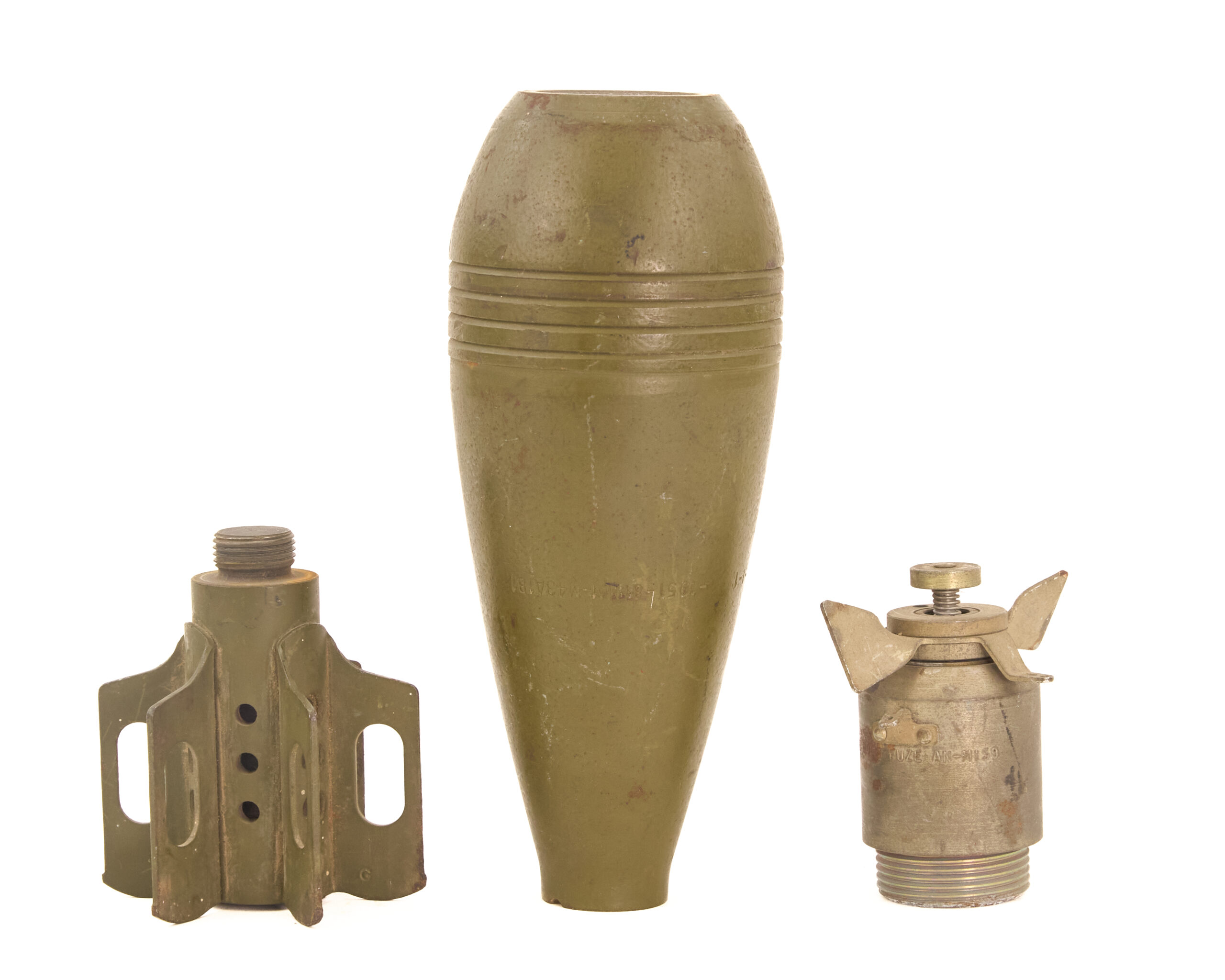 The M43A1B designation and AM-M159 fuze also give the piece a more specific military identity than a generic “mortar shell” description would. For collectors of U.S. ordnance, training pieces, and inert display ammunition, those details matter. They place the round within a recognizable American mortar lineage and make the piece more useful for study, display, and comparison.