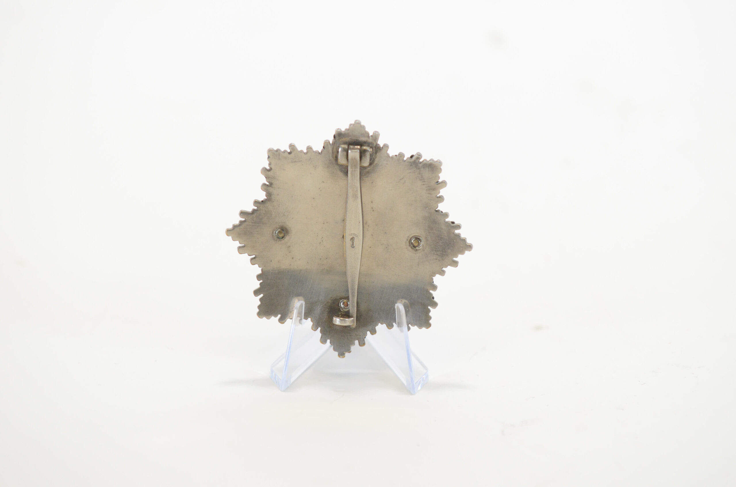 The 1957 Deutsches Kreuz retains the same impressive starburst design as the wartime version, but with the swastika removed and replaced by the traditional Iron Cross motif. This change allowed veterans to honor their service while conforming to postwar German law, which prohibited the display of Nazi symbols. The award is finished with a detailed black enameled center, silver starburst backing, and gilt wreath, highlighting the exceptional craftsmanship of these authorized reissues.