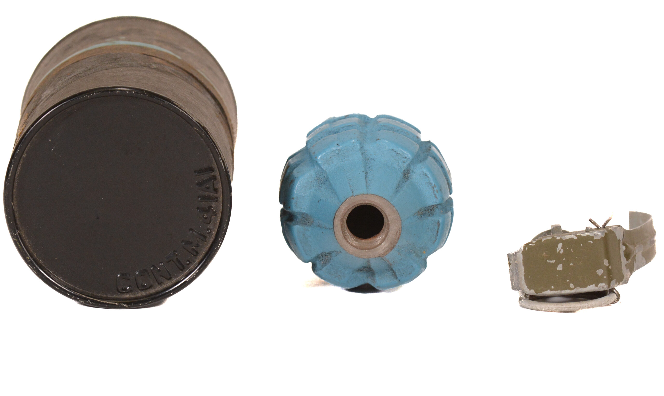 Keywords: M21 practice grenade, inert training grenade, practice ordnance, original cardboard tube, military training gear, M21 grenade display.