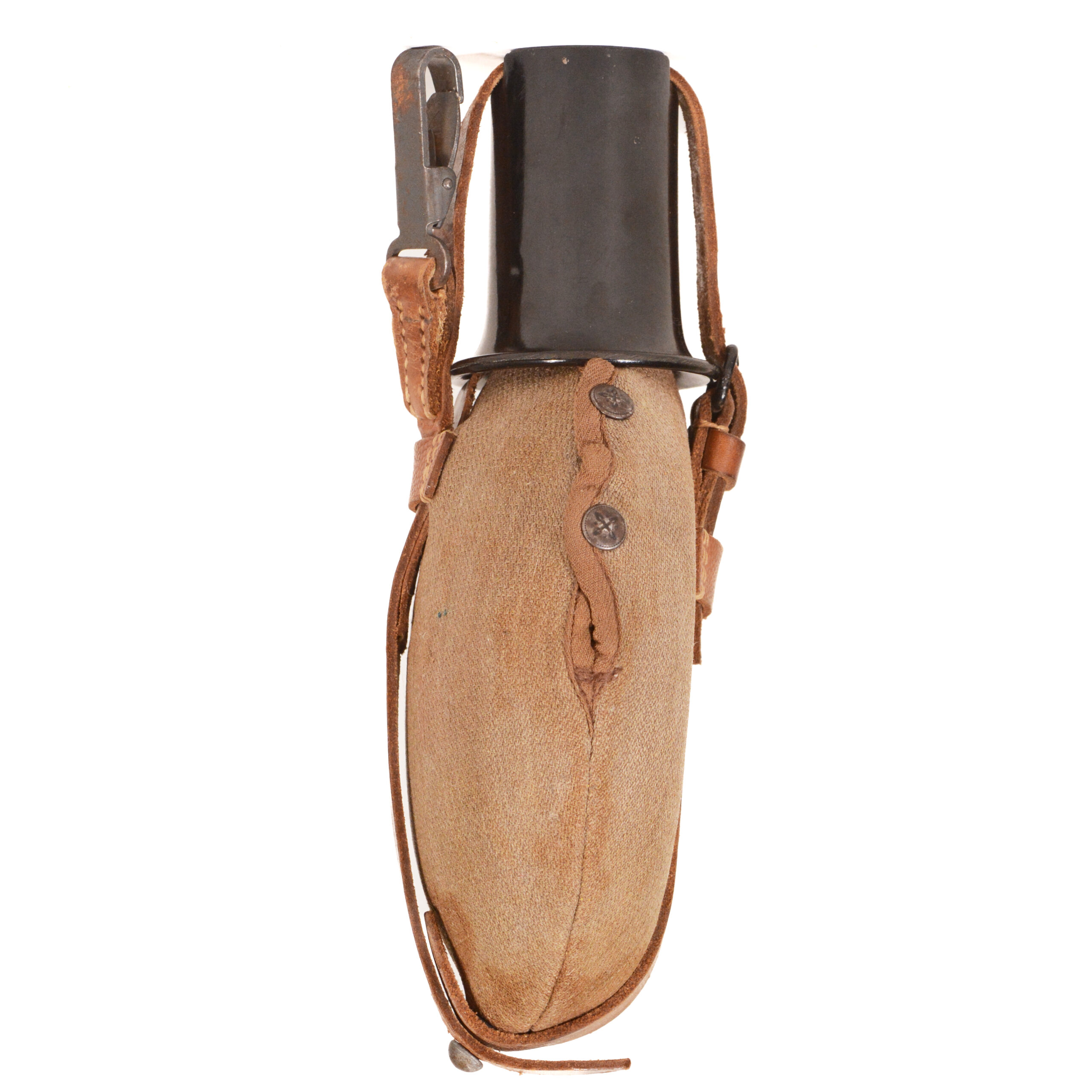 Authentic Late-War German WWII M31 Canteen with Wool Cover, Leather Harness, Bakelite Cup, and Steel Body