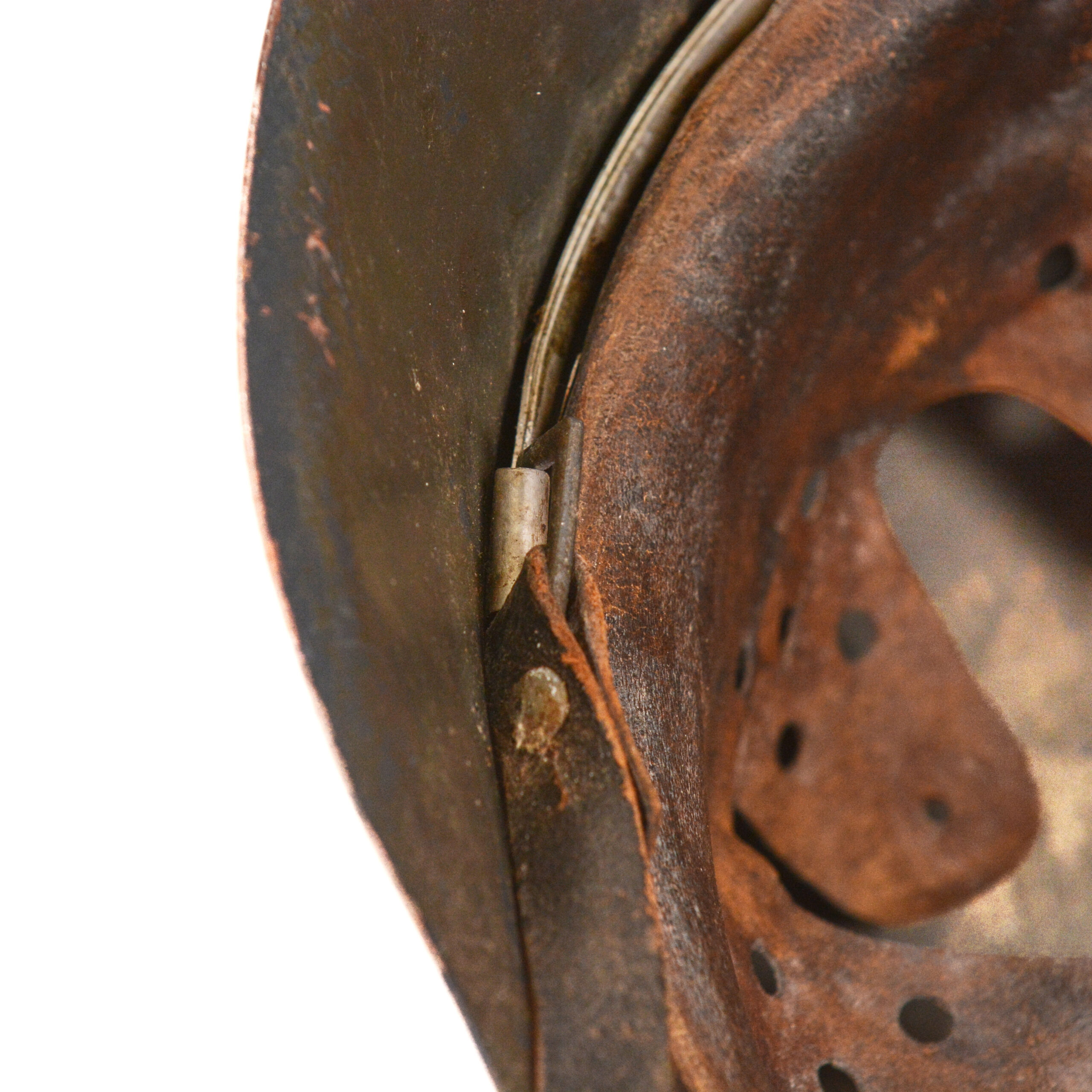 Stamped 3540 and c 166 on the interior skirt, the shell is a size 66, fitted with an original liner sized 58–59. The liner system is the correct M31 suspension with 8 leather panels each with 5 holes, seated in an early aluminum liner band, which is less common in mid-war M40 production. The helmet also retains the correct 40/42 pattern D-ring chinstrap fittings, further supporting its authenticity and placement within the transition period of wartime issue.
