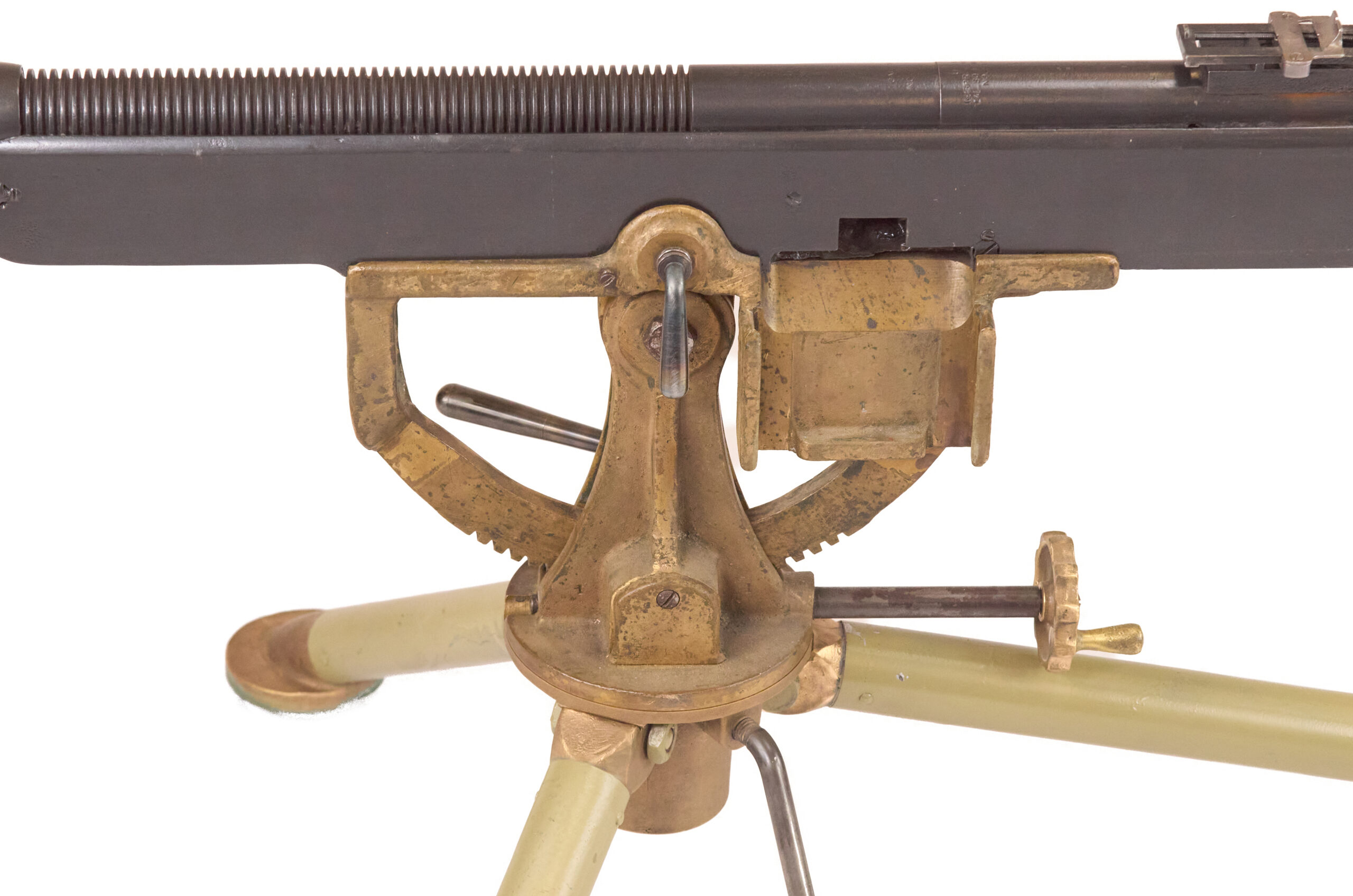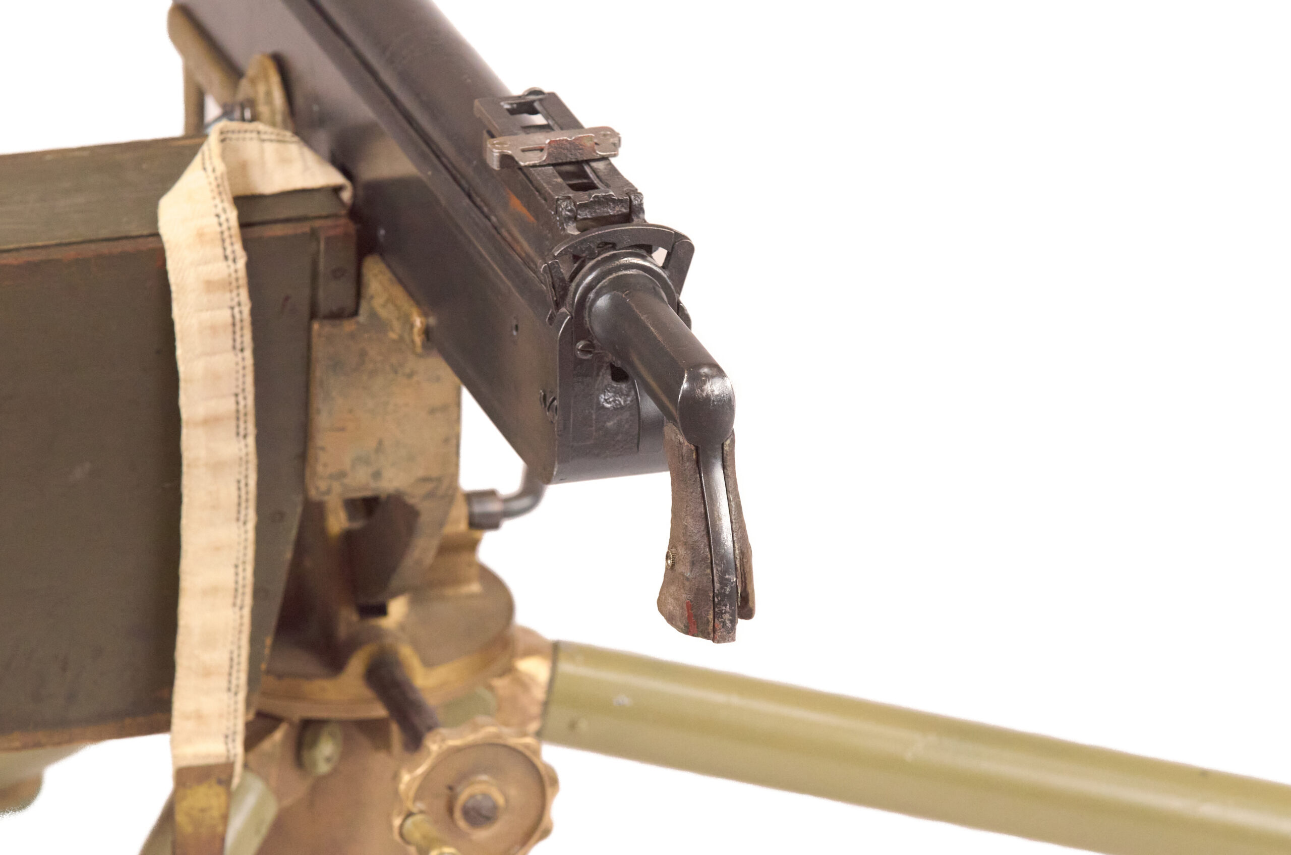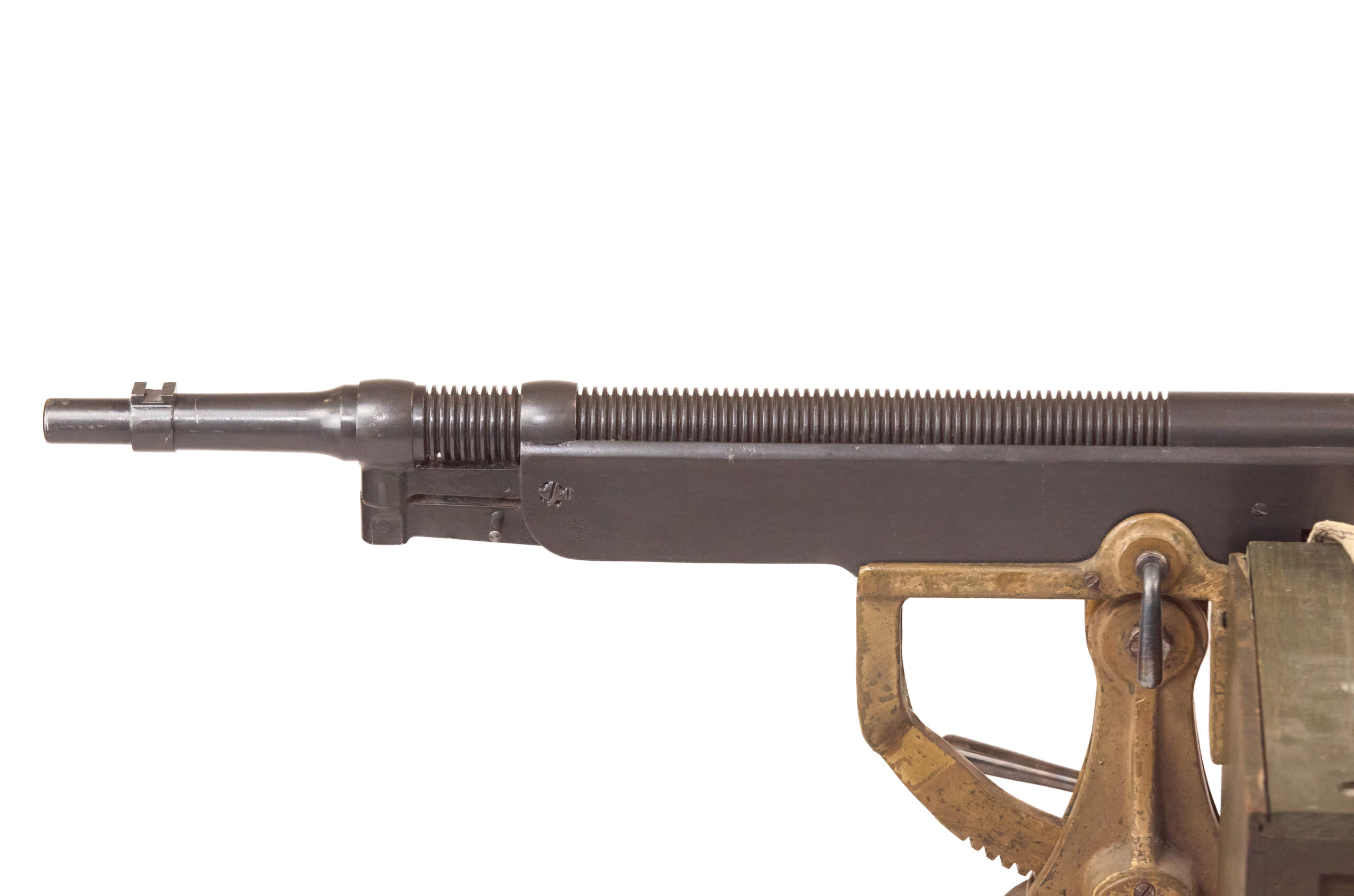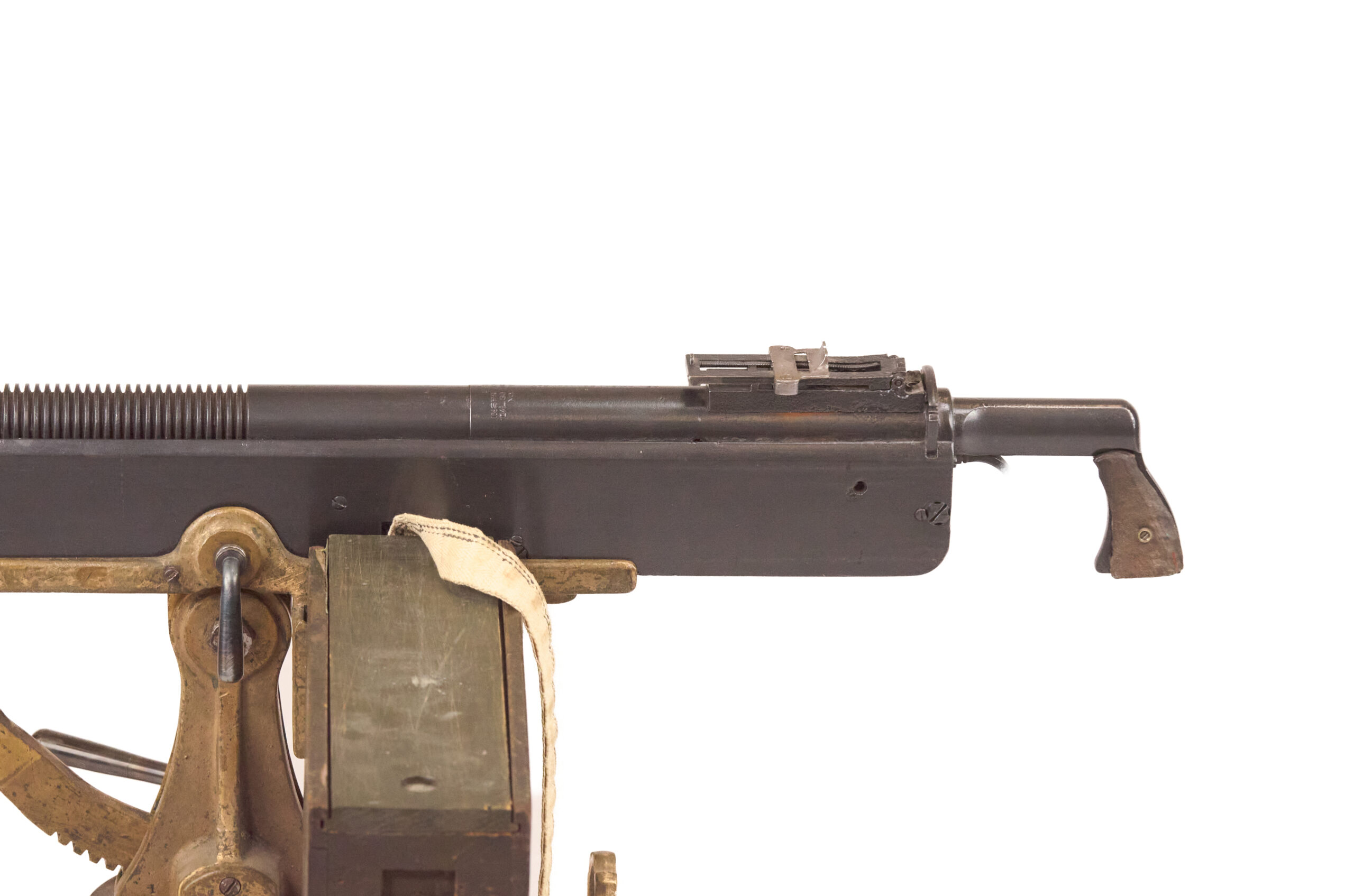 Mechanically, the M1895 used one of the most distinctive systems of any early machine gun. Gas from a port under the barrel drove a lever down and to the rear, which unlocked the action, cycled the bolt, and fed the next round. The gun used a tilting bolt and operated at roughly 450 rounds per minute. That combination gave the design a unique place in the development of automatic weapons and explains why the “potato digger” remains so instantly recognizable today.