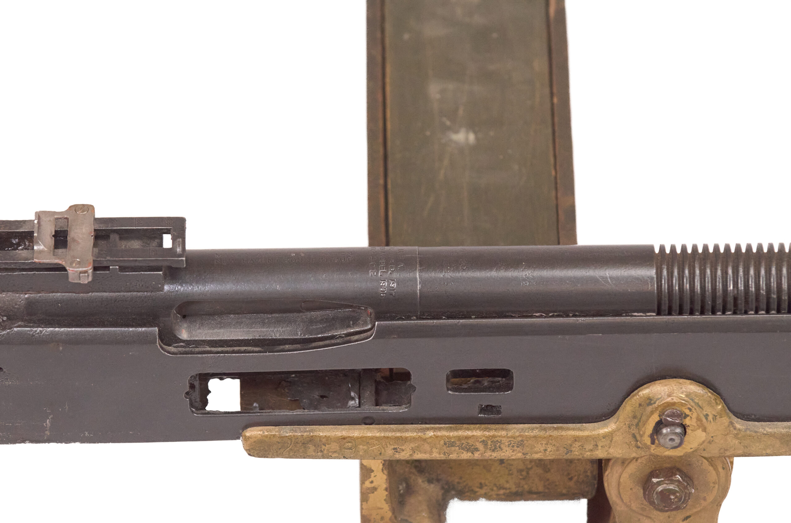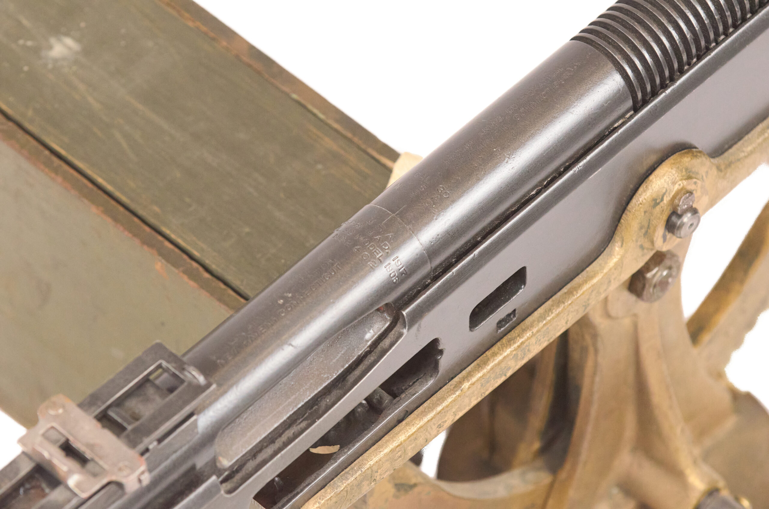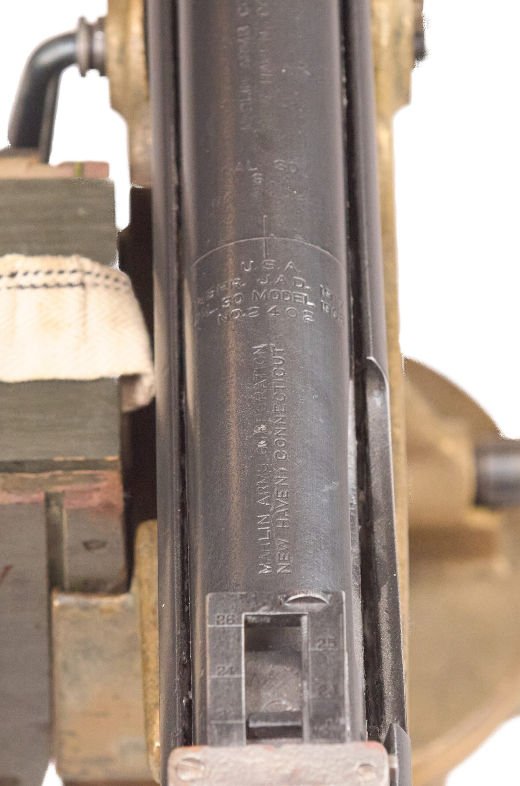 Marlin’s role in the history of the type adds another layer of interest to this example. Colt ceased production of the M1895 and its variants in 1916, then sold the machinery and manufacturing rights to Marlin Rockwell in order to focus on Vickers production. Marlin continued to build and improve the pattern, and the resulting guns developed a strong reputation in their own right. Because of that, a Marlin-marked example with matching numbered barrel and receiver carries more collector interest than a generic M1895 display alone.