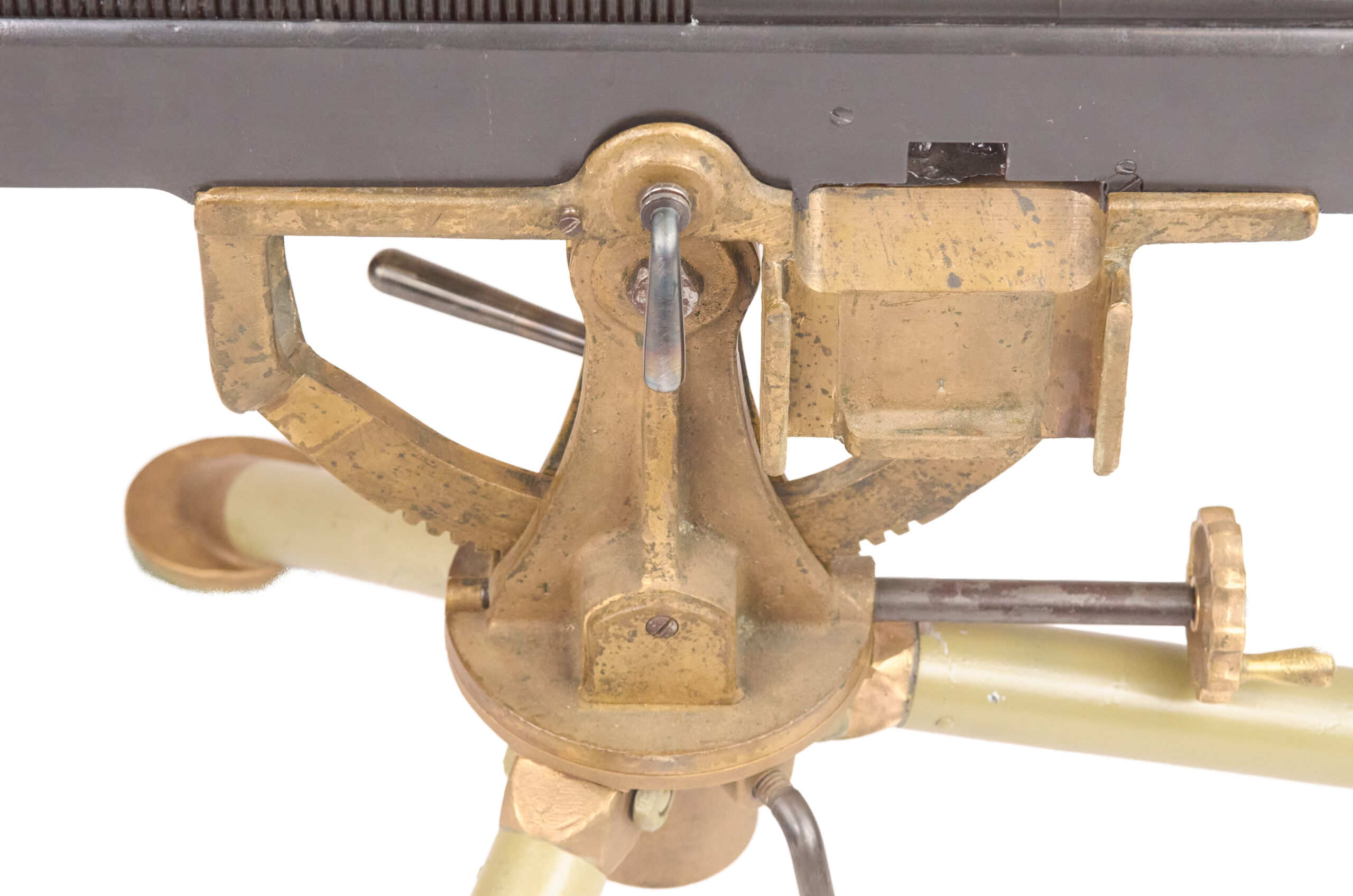 This display set remains in excellent demilled condition overall. The gun shows expected wear from use, and only mild pitting appears in sparse areas. The rear ladder sight is present, though the front blade is missing. The grips remain with the gun, and the plugged barrel is original to the receiver with matching serial numbers. The tripod is in very good condition overall, though the rear foot is missing. Even so, the full set still presents extremely well. Taken as a whole, this is a strong Marlin M1895 display group with matching major components, excellent markings, and very appealing accessories.