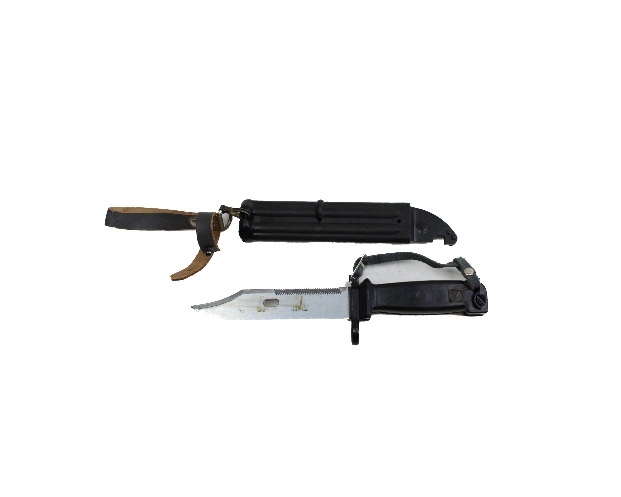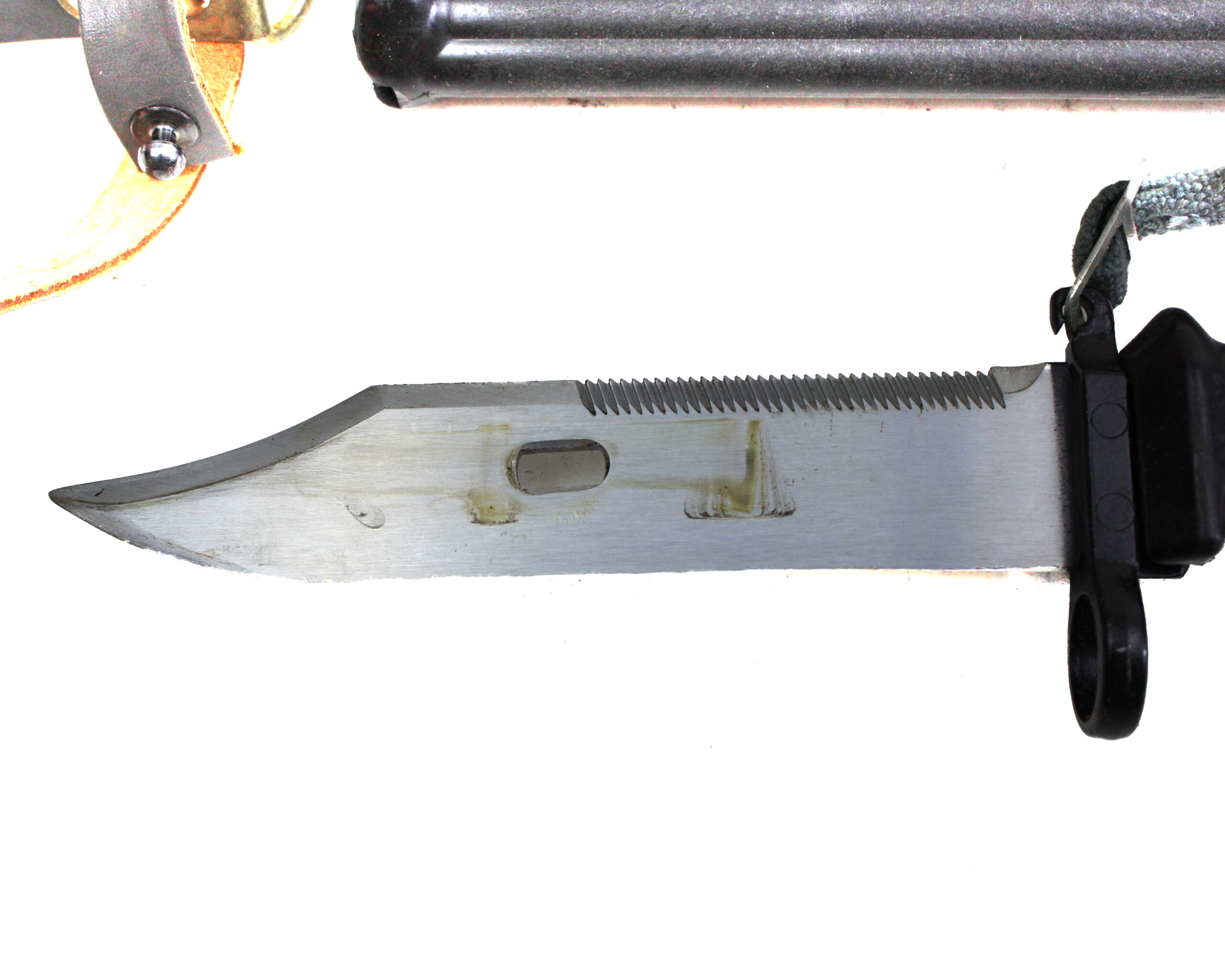 This example is numbers matching, with matching serial numbers on the bayonet and scabbard — a highly desirable attribute for collectors of Cold War–era Warsaw Pact equipment. East German bayonets are especially sought after due to their comparatively limited production and high manufacturing standards.