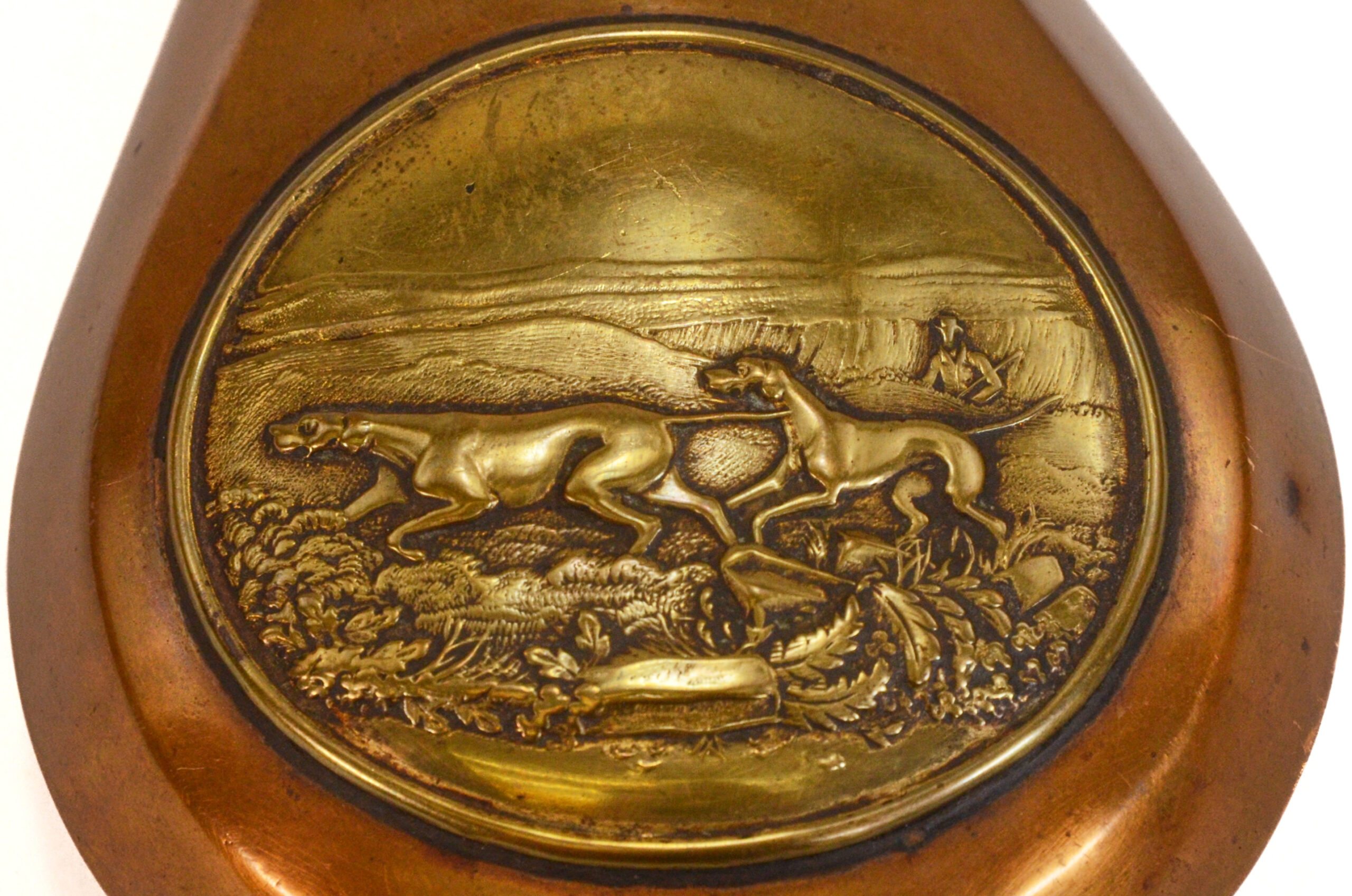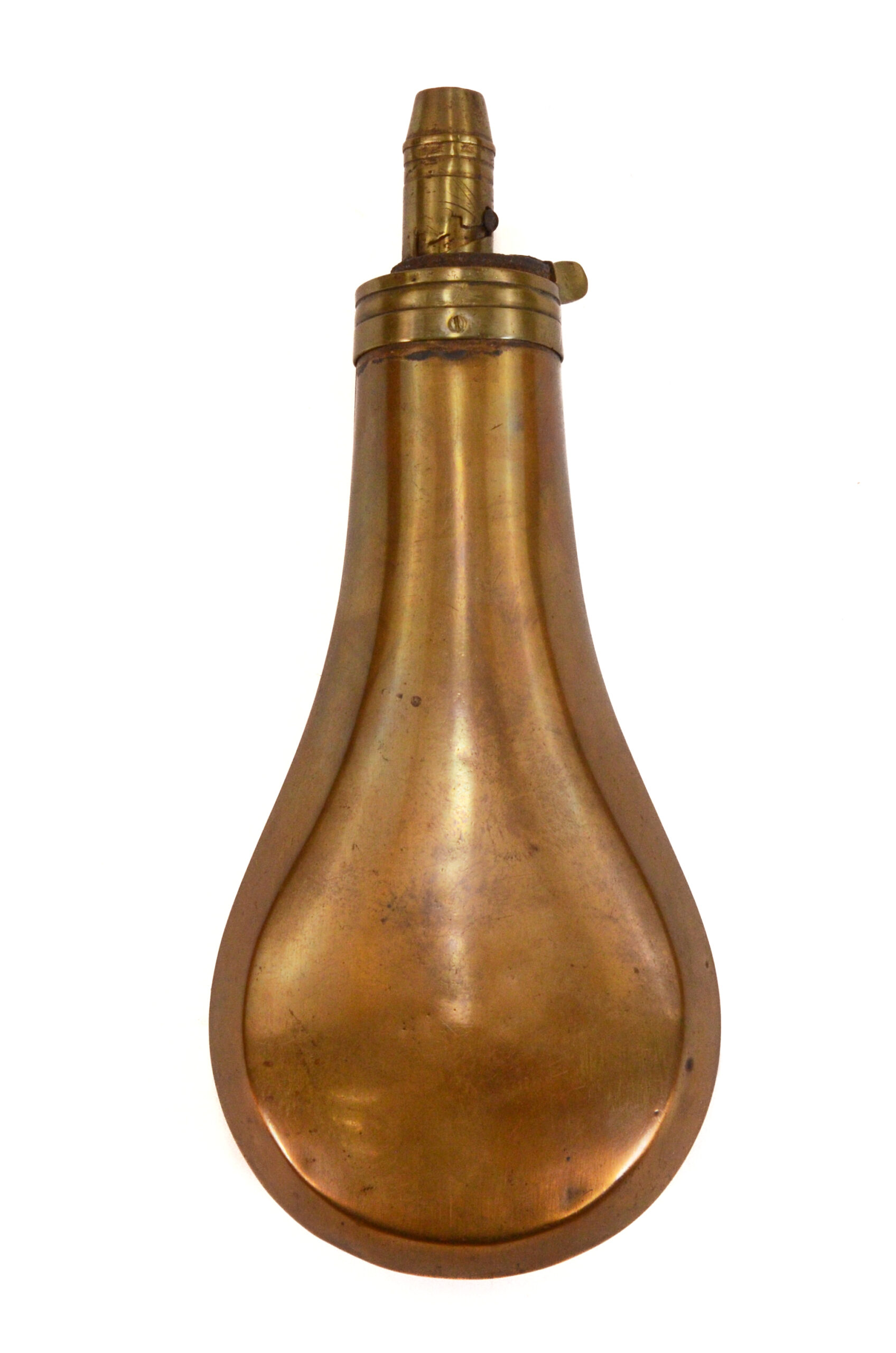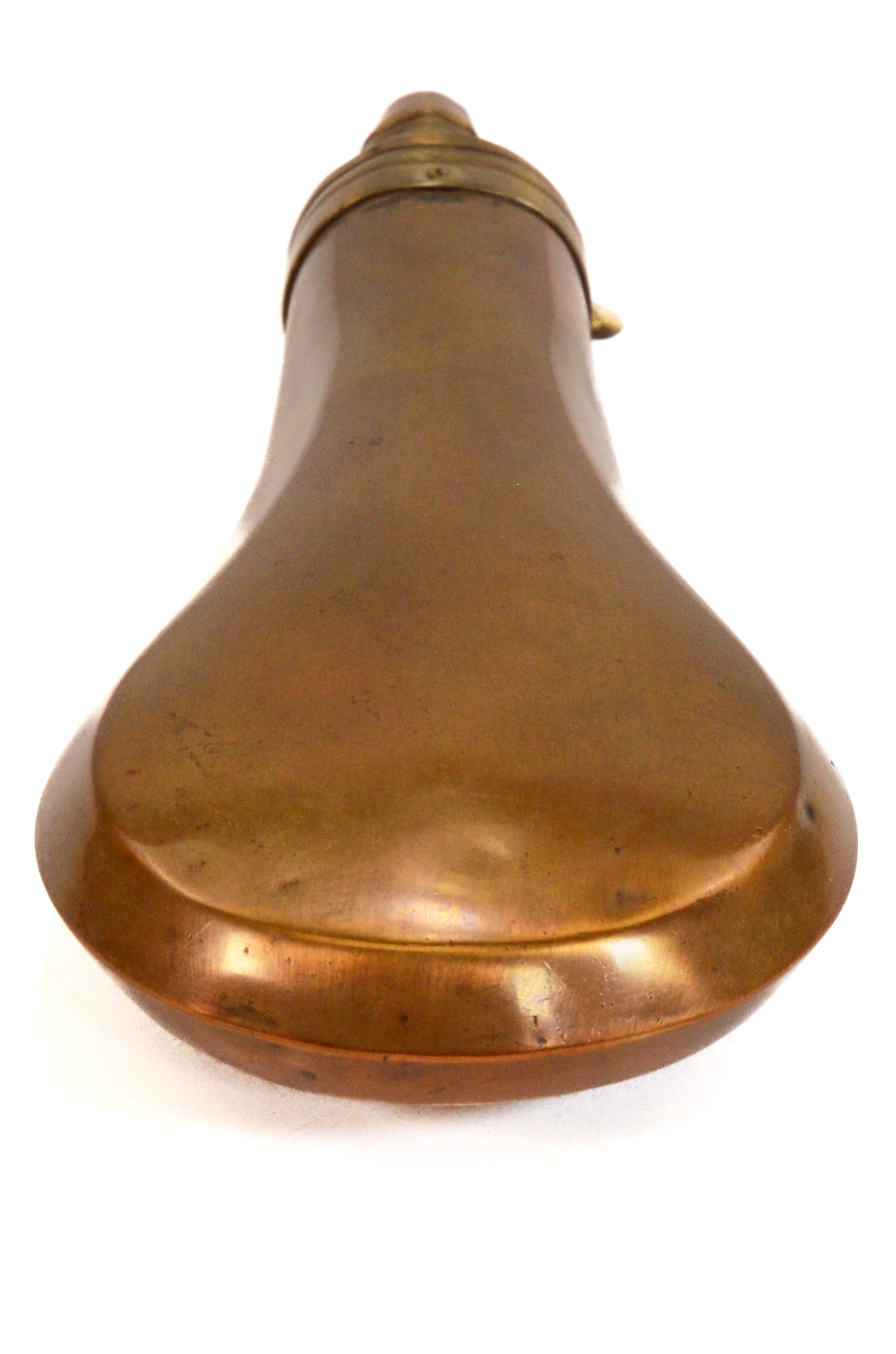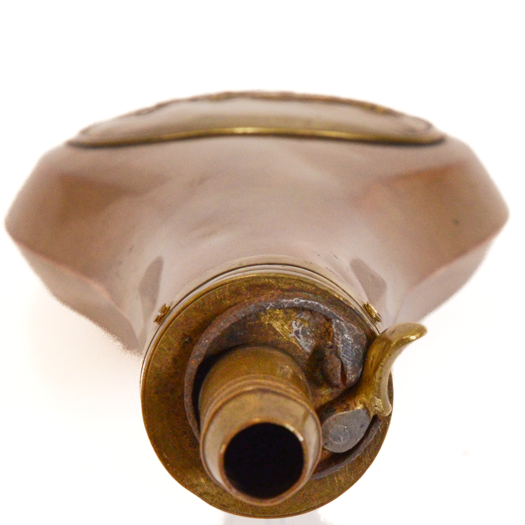 James Dixon & Sons Engraved Brass Game Scene Powder Flask – Copper Body with Brass Fittings