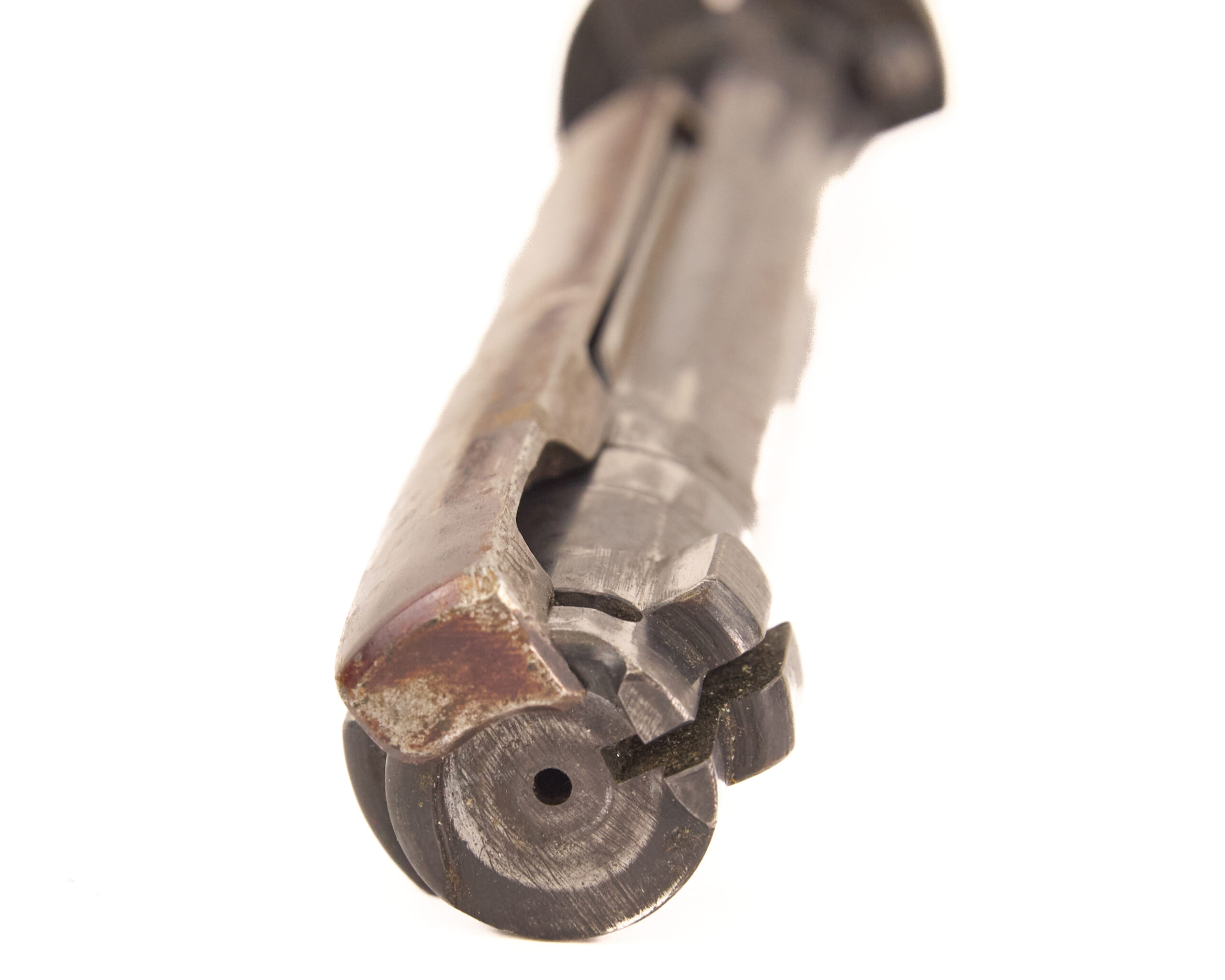 A complete K98k bolt is one of the most important mechanical assemblies on the rifle. In this case, the value lies in completeness, originality, and visible wartime inspection marks rather than in matching serial numbers. Non-matching bolts are a normal part of the surplus market, especially on rifles and assemblies that passed through wartime repair, arsenal work, or later parts redistribution. That makes this a useful piece for restoration, display, or study.