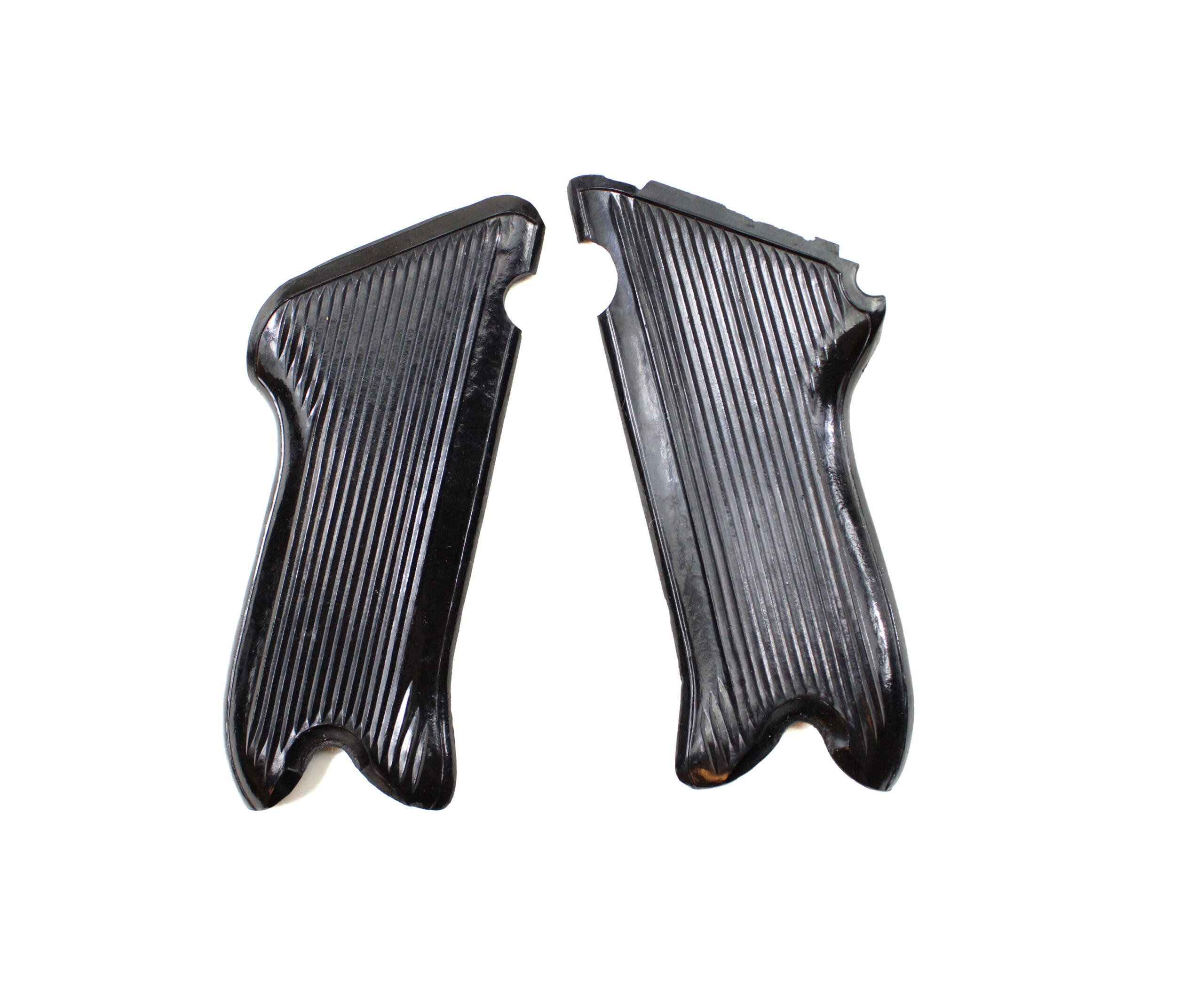 Authentic pair of black bakelite grips for the Luger P08, removed from East German Volkspolizei (VOPO) service pistols. Classic vintage police parts — excellent for restoration or collectors seeking genuine GDR-era components.