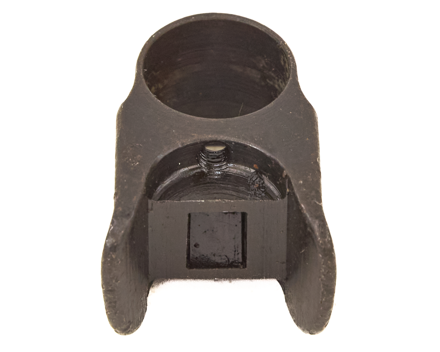 This M39 front sight base is an original surplus stripped assembly for the Finnish Model 39 Mosin-Nagant. Finnish armorers gave the M39 a heavier, more deliberate sighting arrangement than earlier Russian patterns, and the front sight base reflects that change with its broad protective ears and solid military profile. This example keeps its original blued finish in good condition and presents the clean, purposeful look that makes Finnish M39 parts stand apart from standard Soviet pieces.
