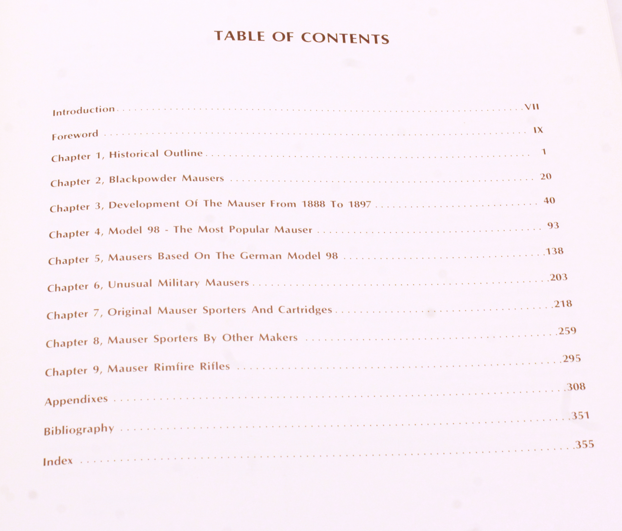 Format: Oversize quarto (~11″ × 9″), hardcover with dust jacket, approximately 364 pages of text, over 670 black-and-white photographs, exploded views, cutaways, detailed charts, spec tables, and illustrations covering Mauser military bolt-action rifles worldwide