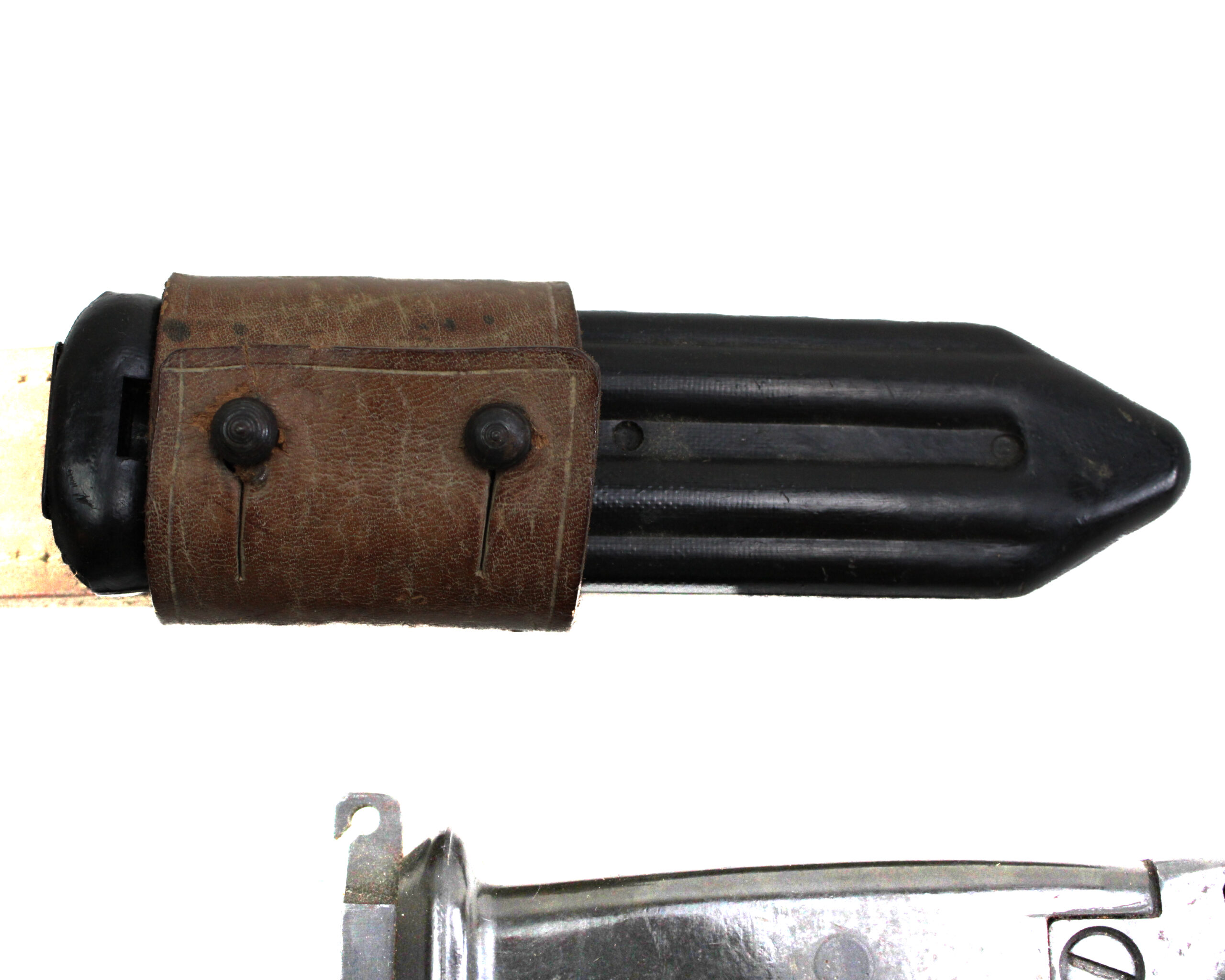 Constructed with a steel blade and classic Chinese Type II–style profile, these bayonets are known for their rugged construction, smooth black bakelite furniture, and historical association with Chinese AK variants. Highly desirable among collectors of Norinco, PolyTech, and Clayco-imported AK accessories.