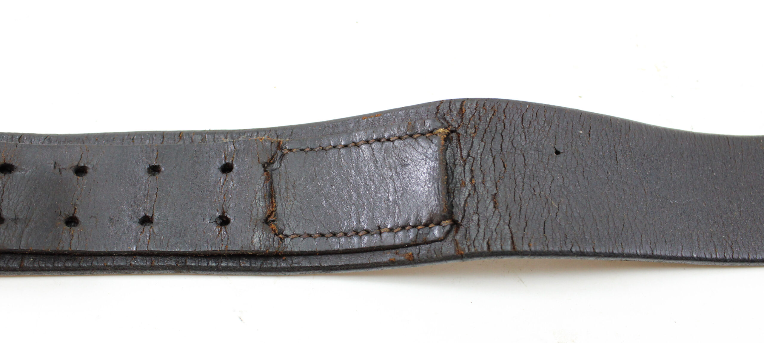 The belt is made of black leather, cut in regulation width, with fastening clip and adjustment holes. The Heidelberg 1941 stamp confirms wartime production and provides an excellent point of authenticity and collectability.
