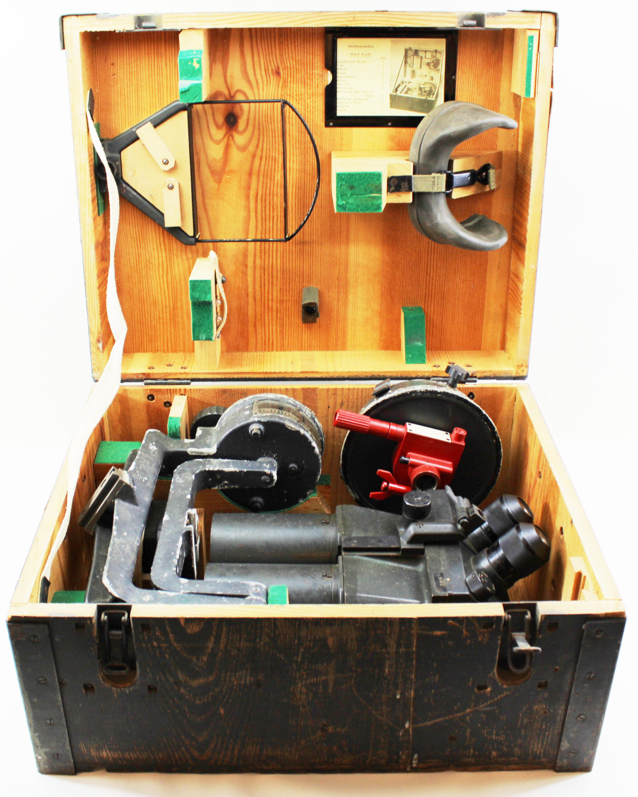 This is a highly collectible and authentic German WWII Luftwaffe D.F. 10×80 Flak binocular set, Comes with Brong Back paperwork on the lid of the crate, originally issued for use by anti-aircraft crews during the war. Known for their impressive magnification and wide field of view, these optics were mounted on tripods and used to track aircraft during air raids.
