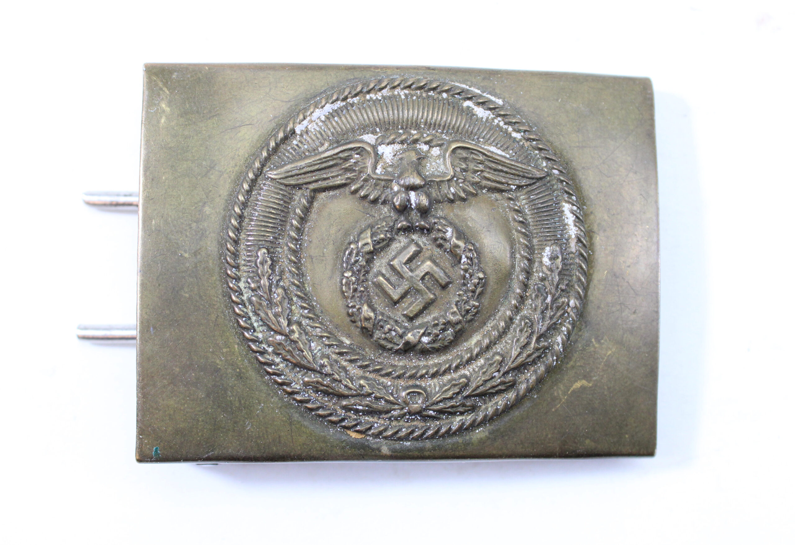 These buckles were issued to members of the SA, also known as the Brownshirts, the paramilitary wing of the Nazi Party prior to and during the early years of WWII. Brass construction is typical of early-period manufacture before later wartime materials switched to nickel or steel.
