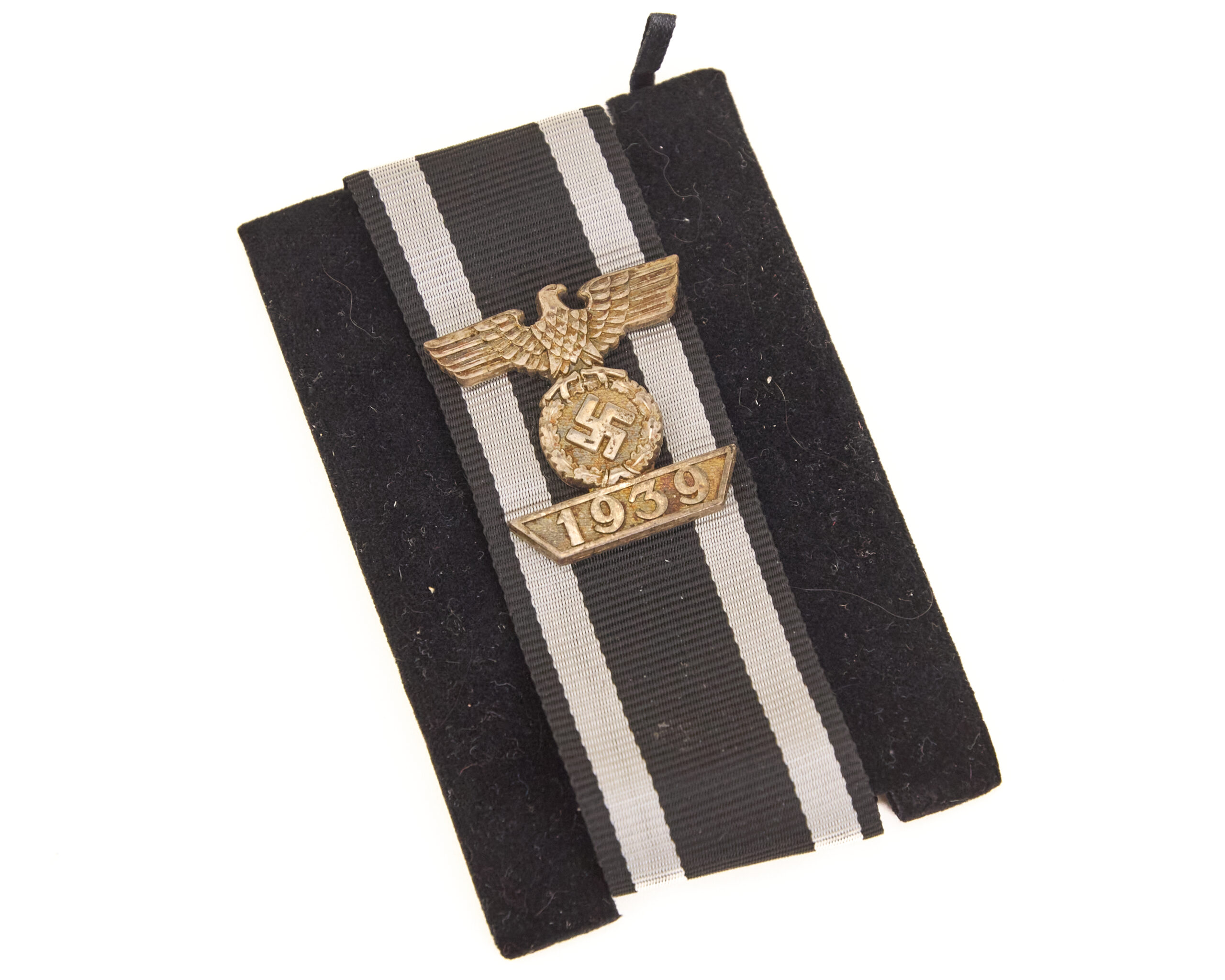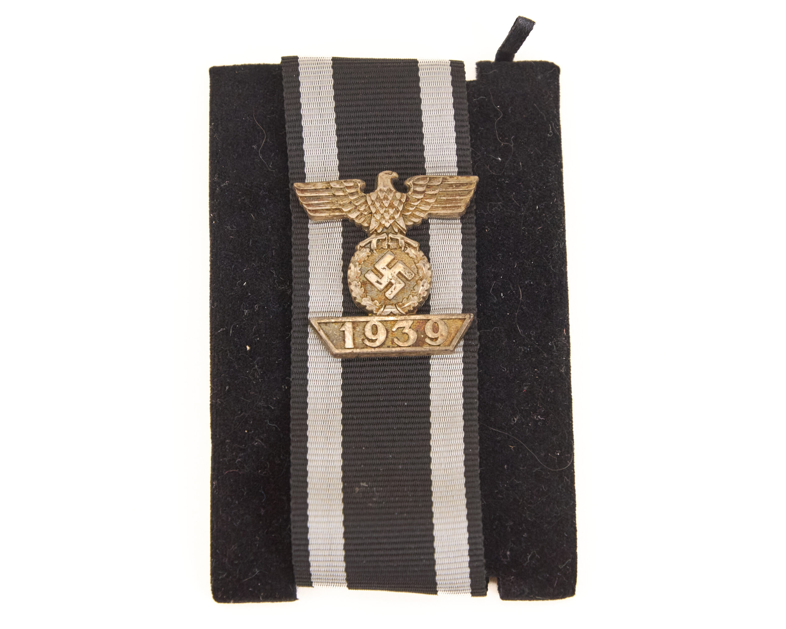 An original example of the Spange to the Iron Cross Second Class, Type II, awarded to recipients who had previously earned the Iron Cross during the First World War and were subsequently recognized for service in the Second World War. The clasp is well-executed with crisp detail and retains its original finish, presenting in excellent overall condition.