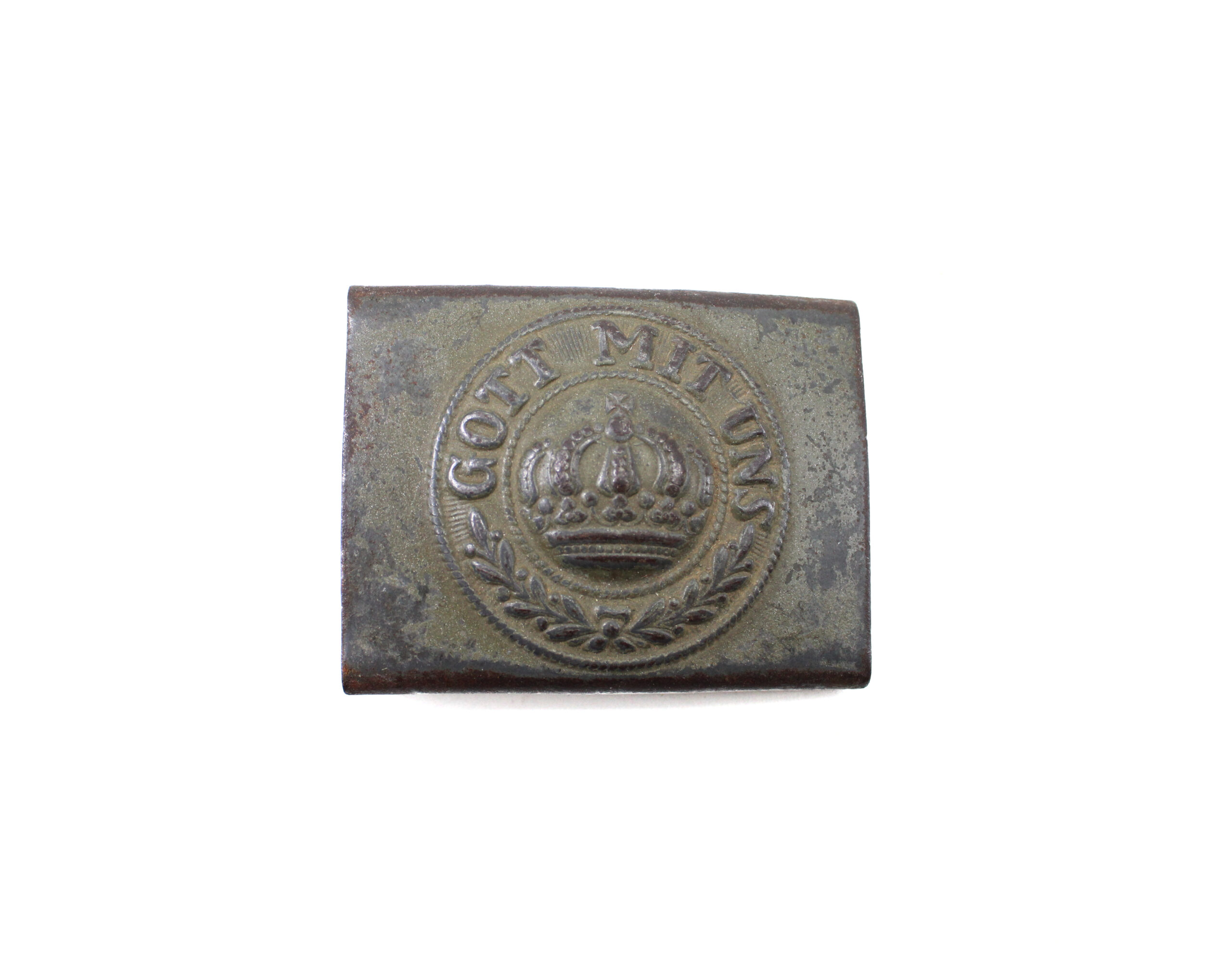 This is an original Imperial German WWI M1915 leather belt, complete with its Prussian steel belt buckle. The buckle features the iconic “Gott Mit Uns” (God With Us) motto within a laurel wreath and the Prussian crown at the center, all emblematic of the German soldier during the Great War.