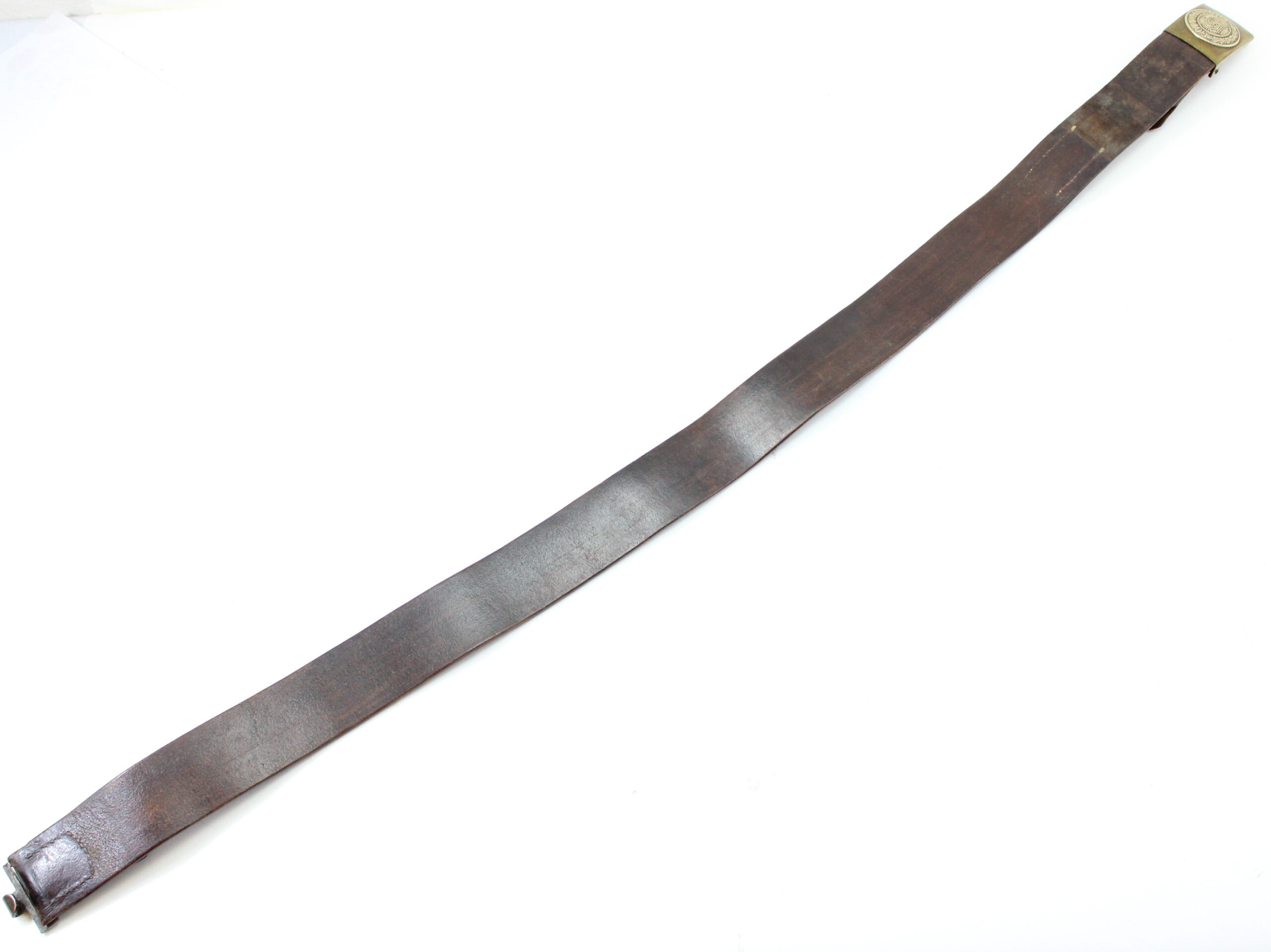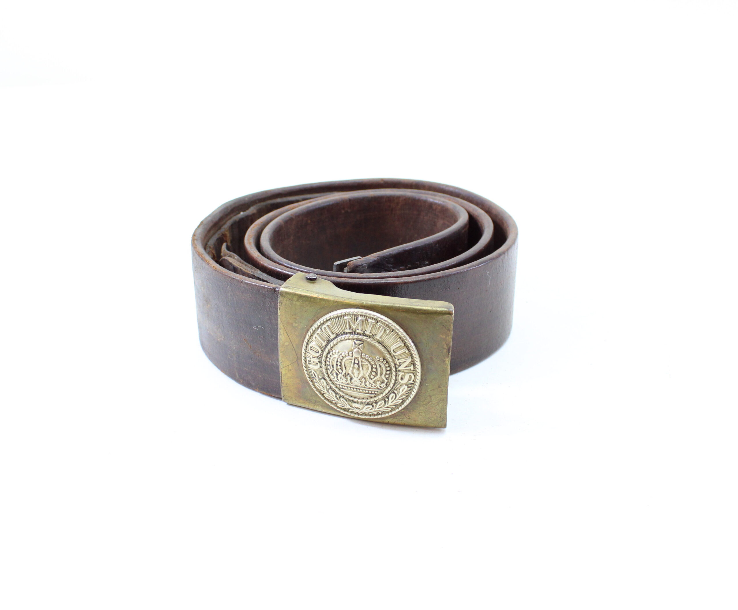 Authentic Imperial German WWI Prussian M1895 leather belt, complete with its regulation “Gott Mit Uns” brass and nickel buckle.