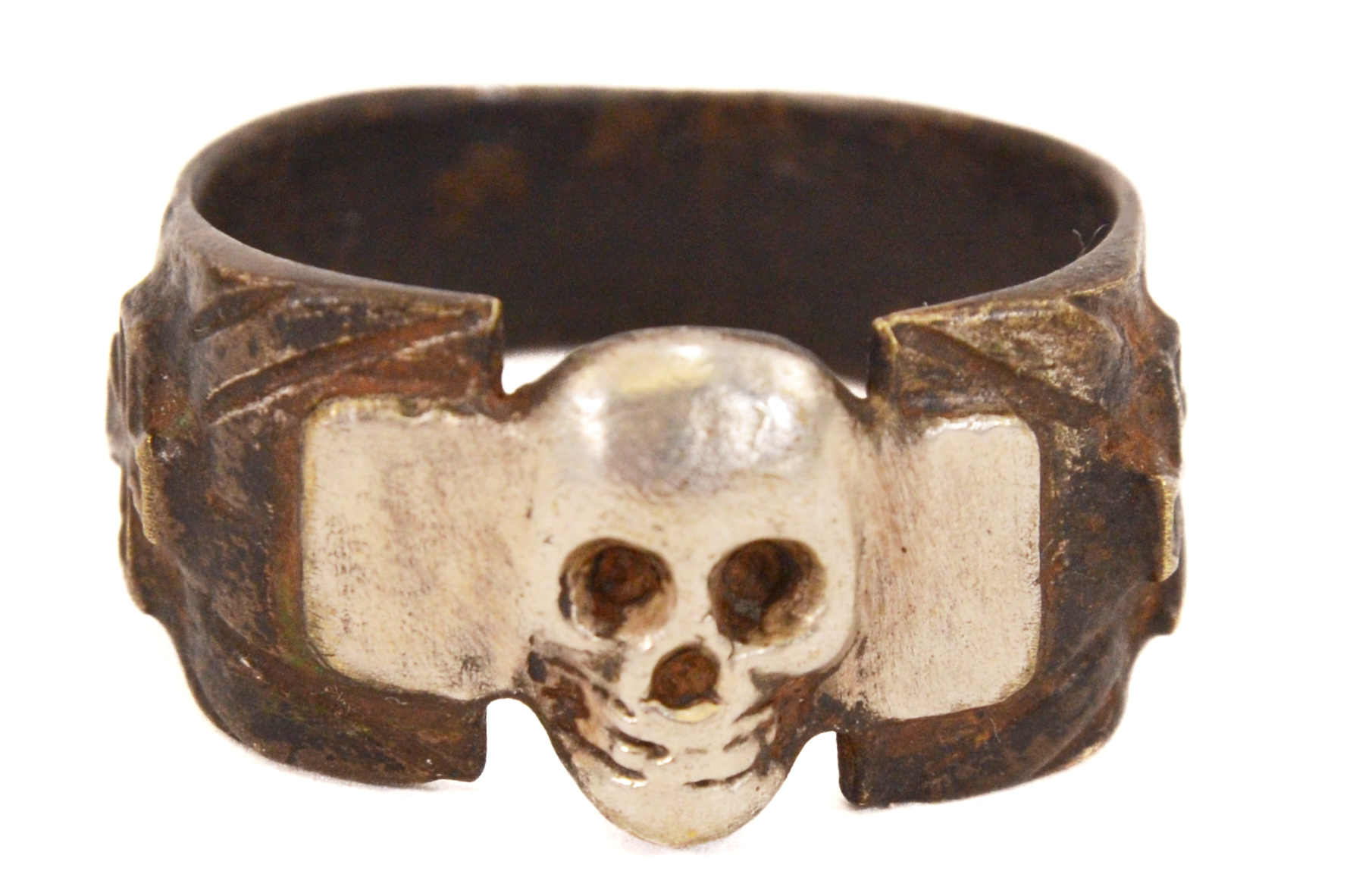 Keywords: Totenkopf ring, SS style skull ring, WWII German private purchase ring, honor ring reproduction, Third Reich personal effects.