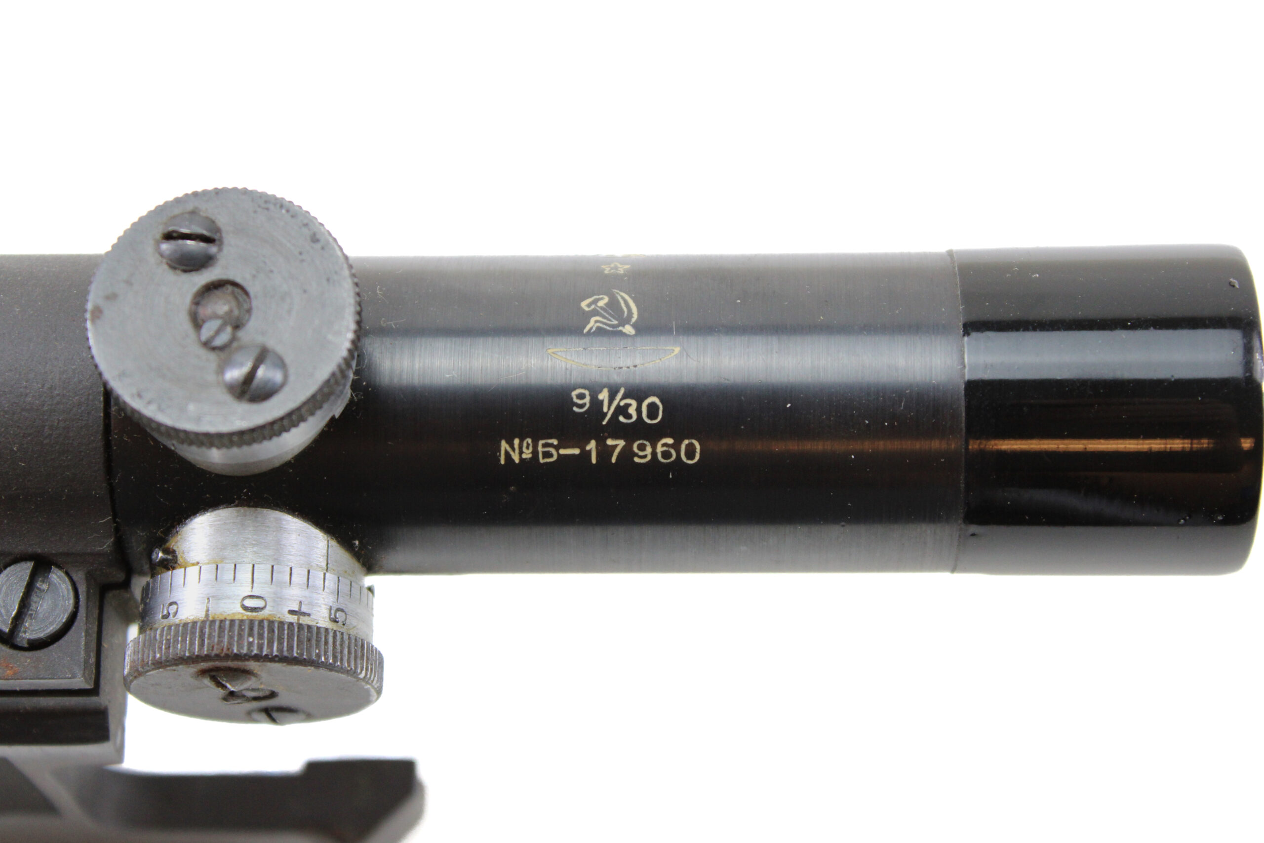Original Russian PU 3.5x sniper scope complete with mounting rings, designed for use on the Mosin-Nagant M91/30 sniper rifle.