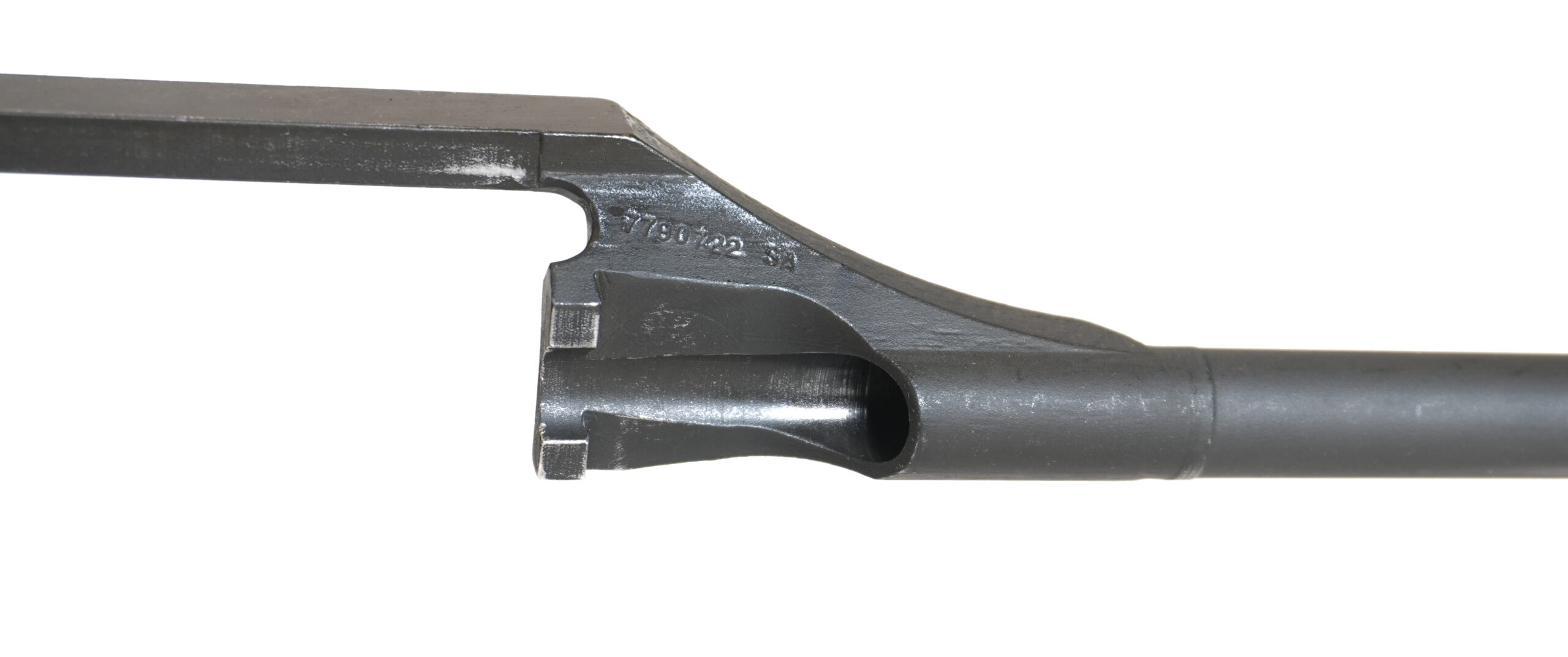 The operating rod is a critical component of the Garand’s semi-automatic action, guiding the bolt during cycling and channeling gas-driven energy from the rifle’s gas system. This example is a Springfield-marked op rod, typically stamped “SA” along with a drawing number and heat lot code. These identifiers help match rods to specific production periods, with early WWII versions being milled and uncut, and later examples featuring the post-war relief cut introduced for durability.
