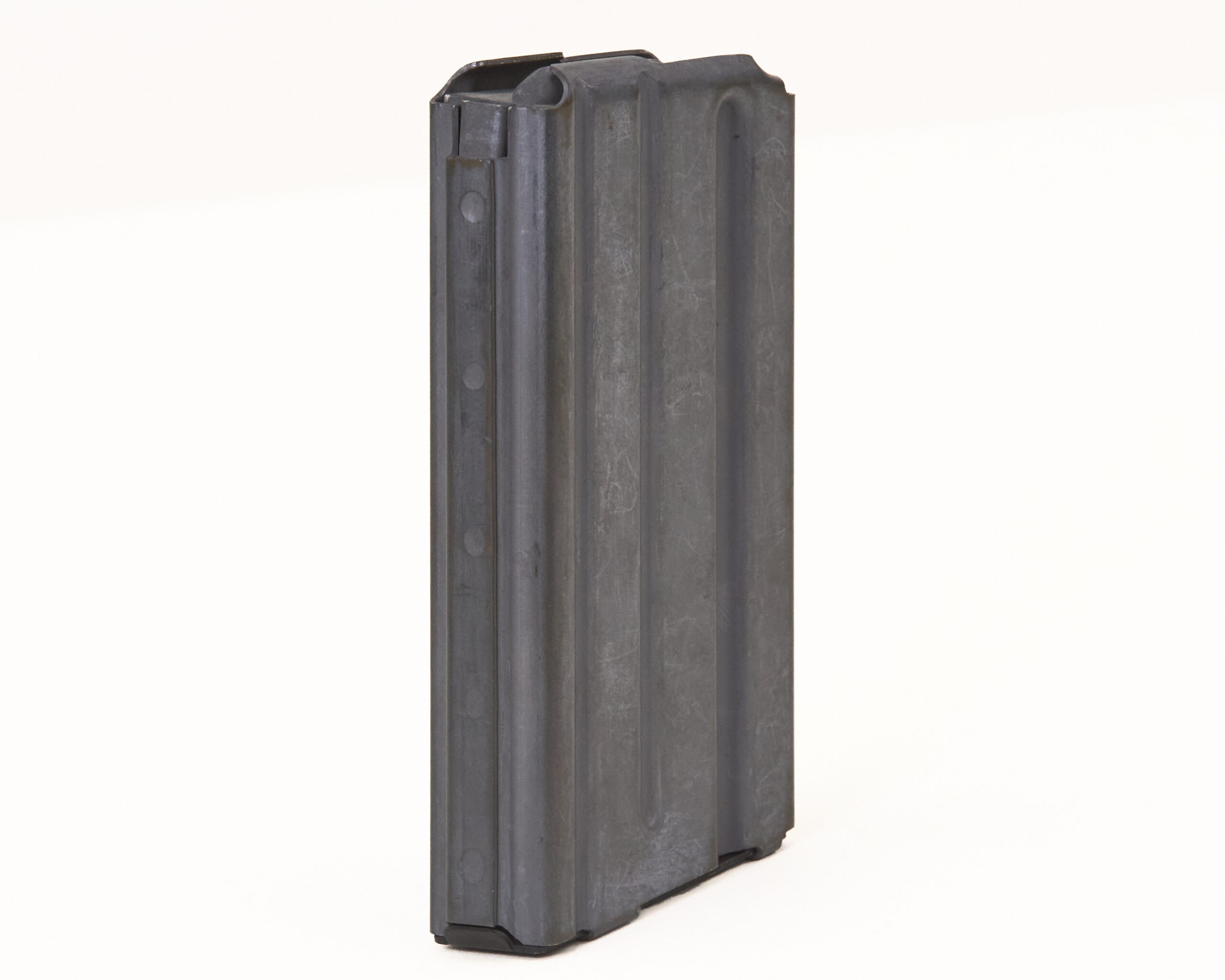 Constructed with a lightweight aluminum body and classic 20-round configuration, this magazine reflects the original design favored for its compact profile, excellent balance, and reliability in prone or bench shooting positions. The body retains sharp edges and uniform finish, indicative of no prior service use, handling wear, or field issue.