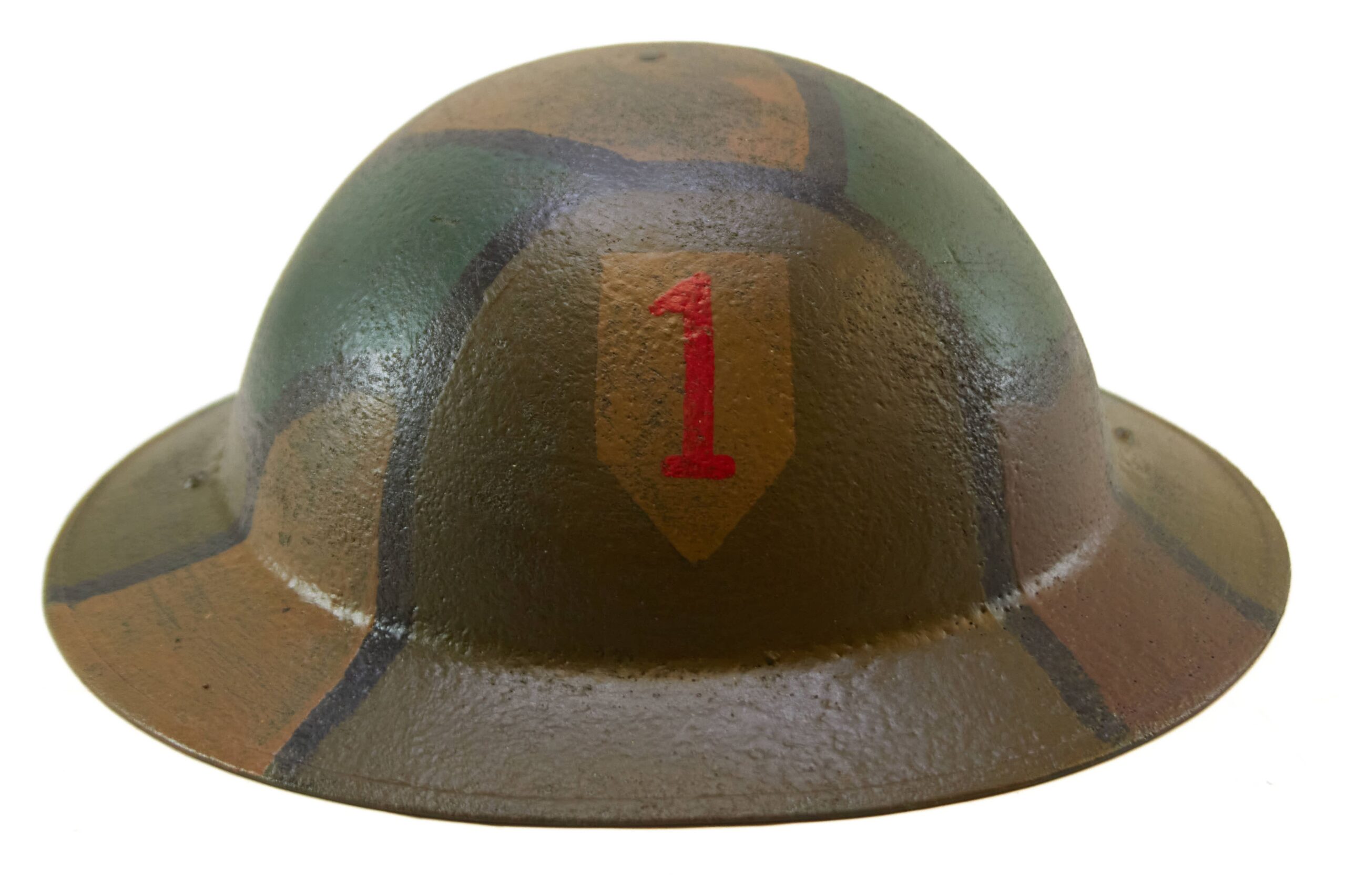 Original WW1 U.S. Big Red One Brodie Helmet with Refurbished Camouflage