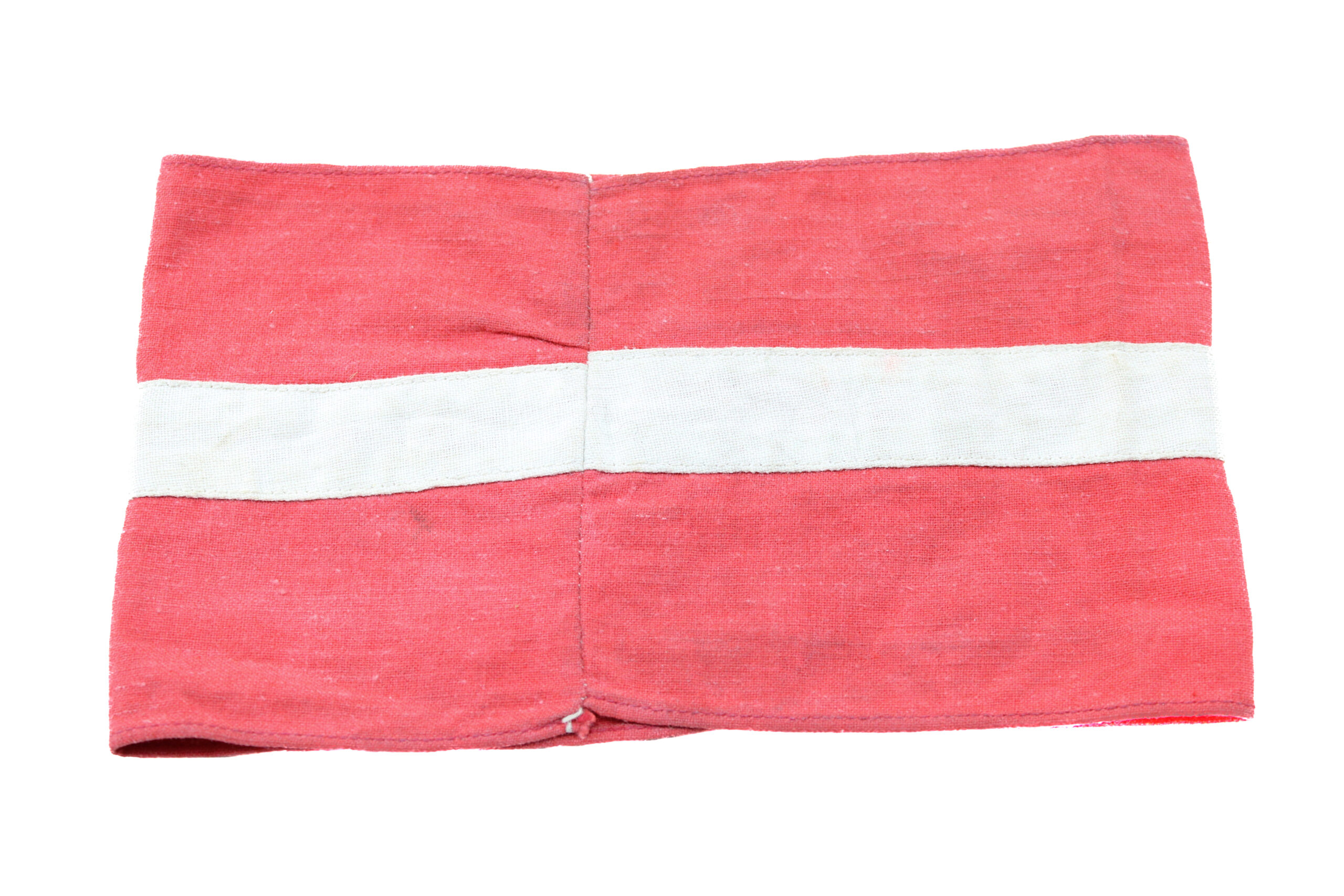 Authentic WWII German Hitlerjugend (Hitler Youth) armband, constructed of red cotton with a central white band and black swastika within a white diamond field. These armbands were worn by members of the Hitler Youth organization during rallies, parades, and official functions.