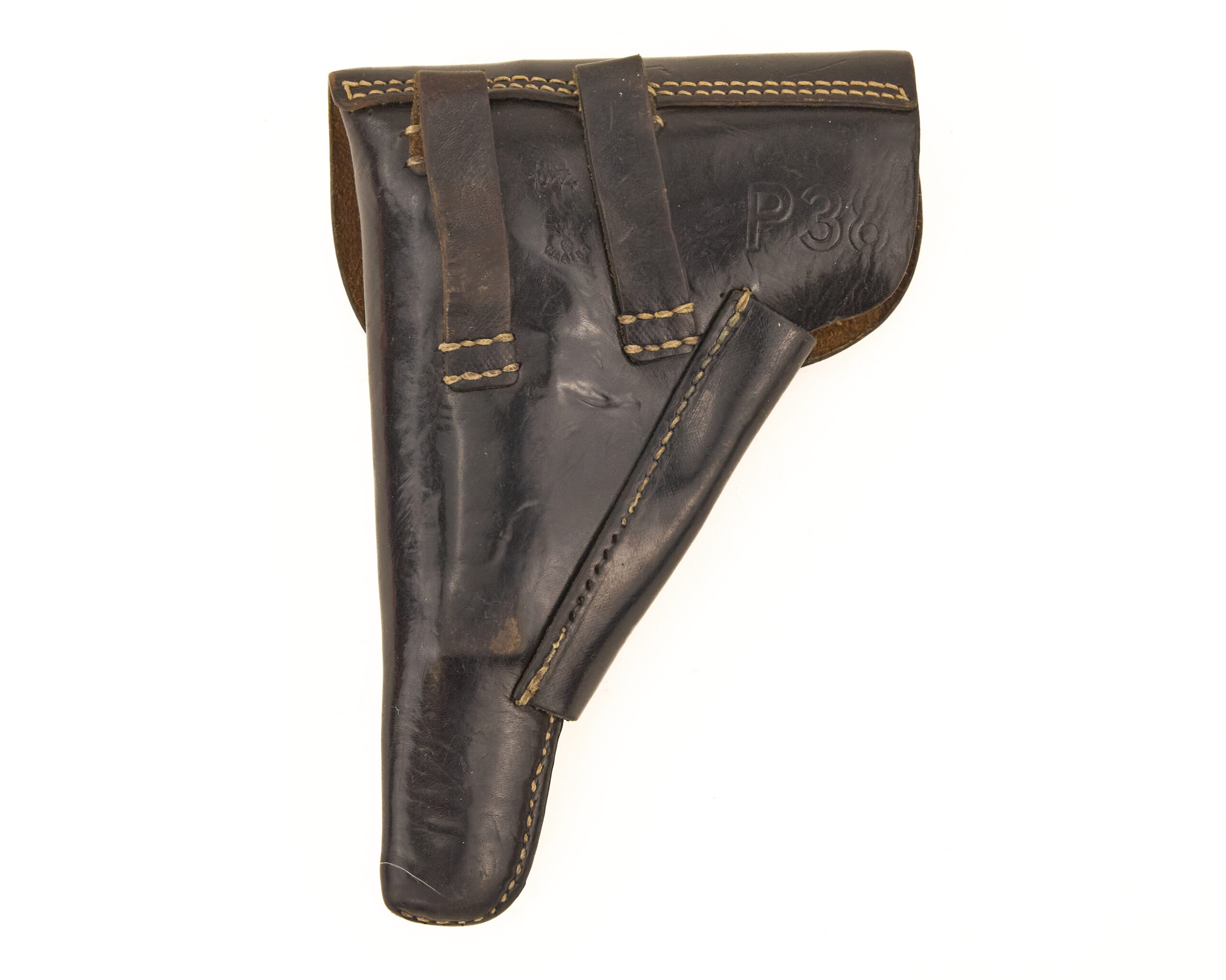 Overall, this is a strong, original 1944-dated P38 holster with correct maker code, Waffenamt acceptance, and proper rear P38 designation—an excellent example for completing a wartime Walther P38 rig or enhancing an advanced German WWII leather equipment collection.