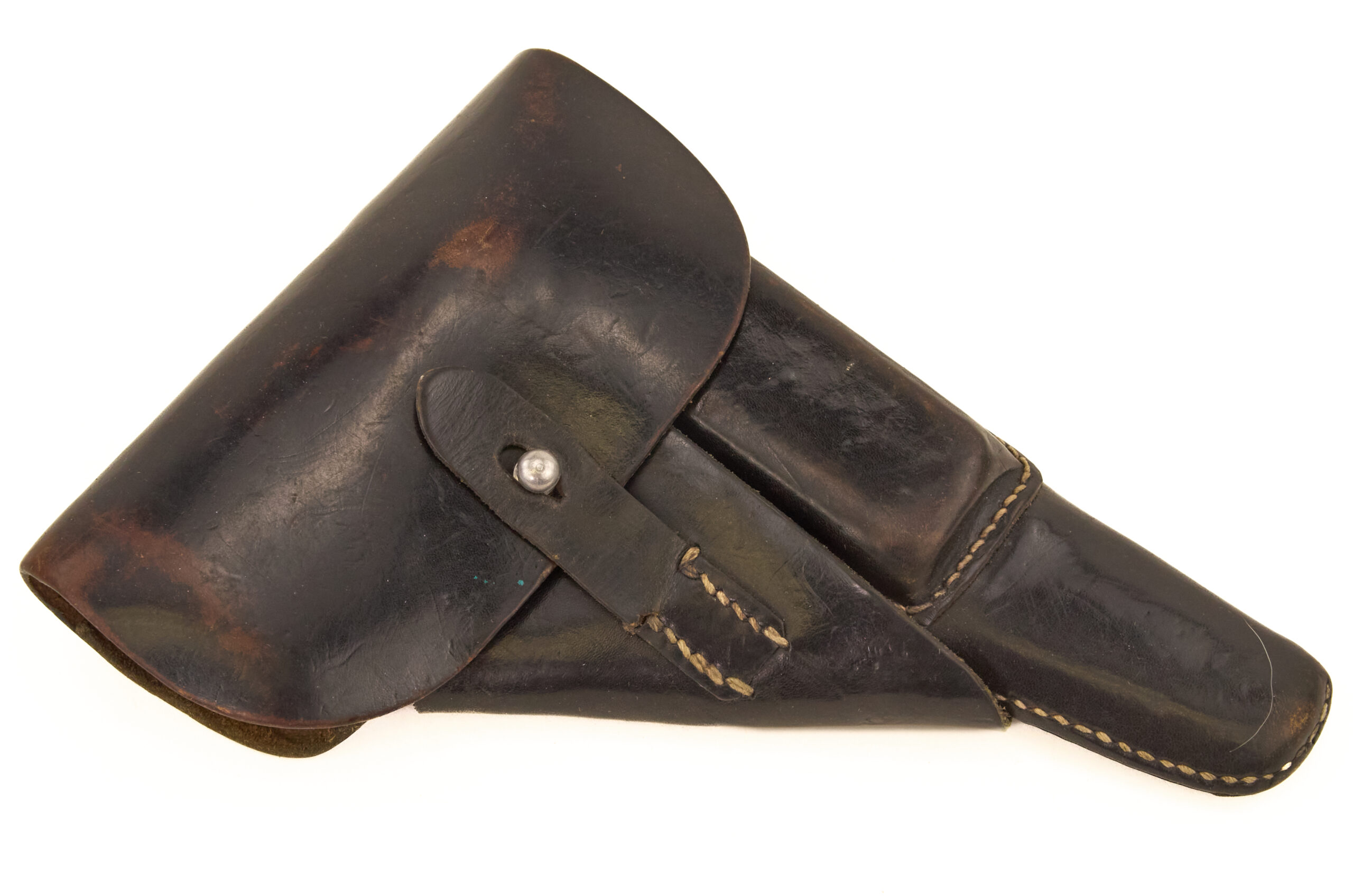 An original WWII German P38 black leather holster, dated 1944 and maker marked, presented in very solid, service-used condition.