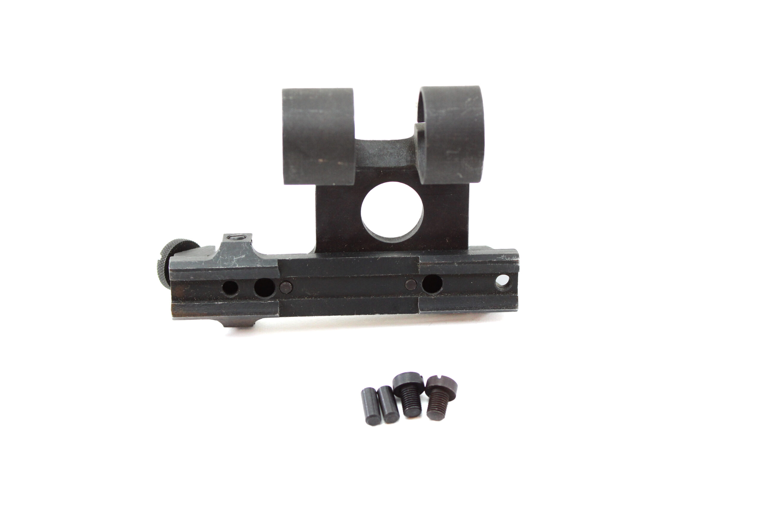 Complete Russian PU scope base set for the Mosin-Nagant M91/30 sniper rifle, constructed from blued steel. This set includes the PU base, scope rings, and mounting screws, making it ready for installation or restoration of a classic Soviet sniper rifle.