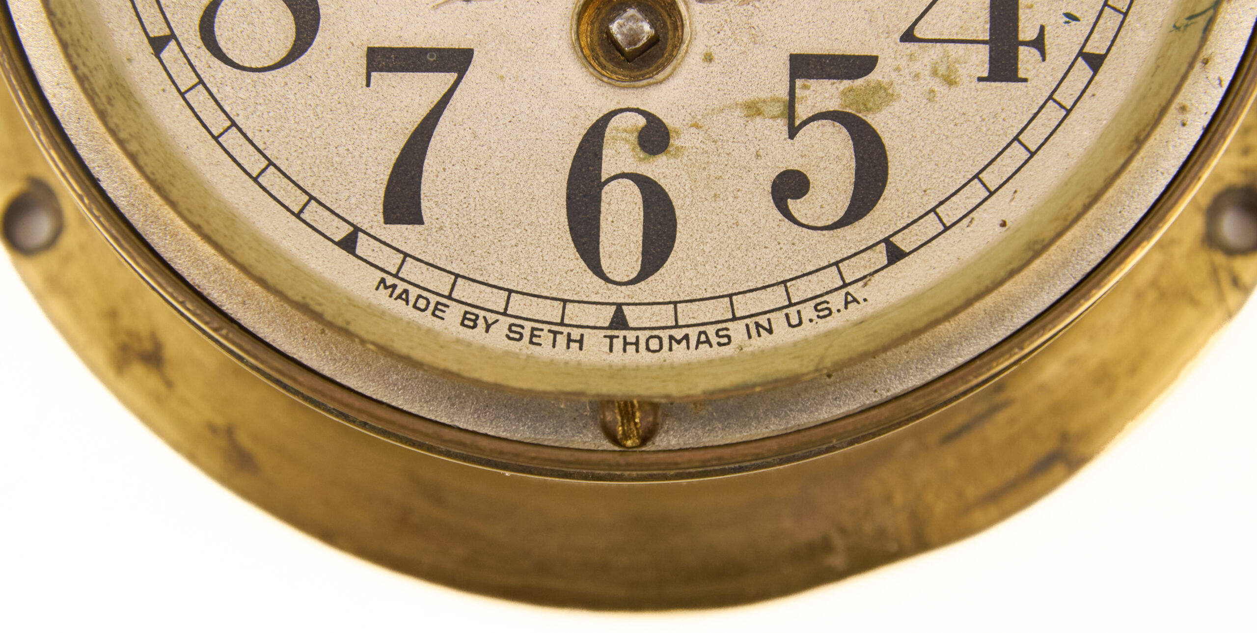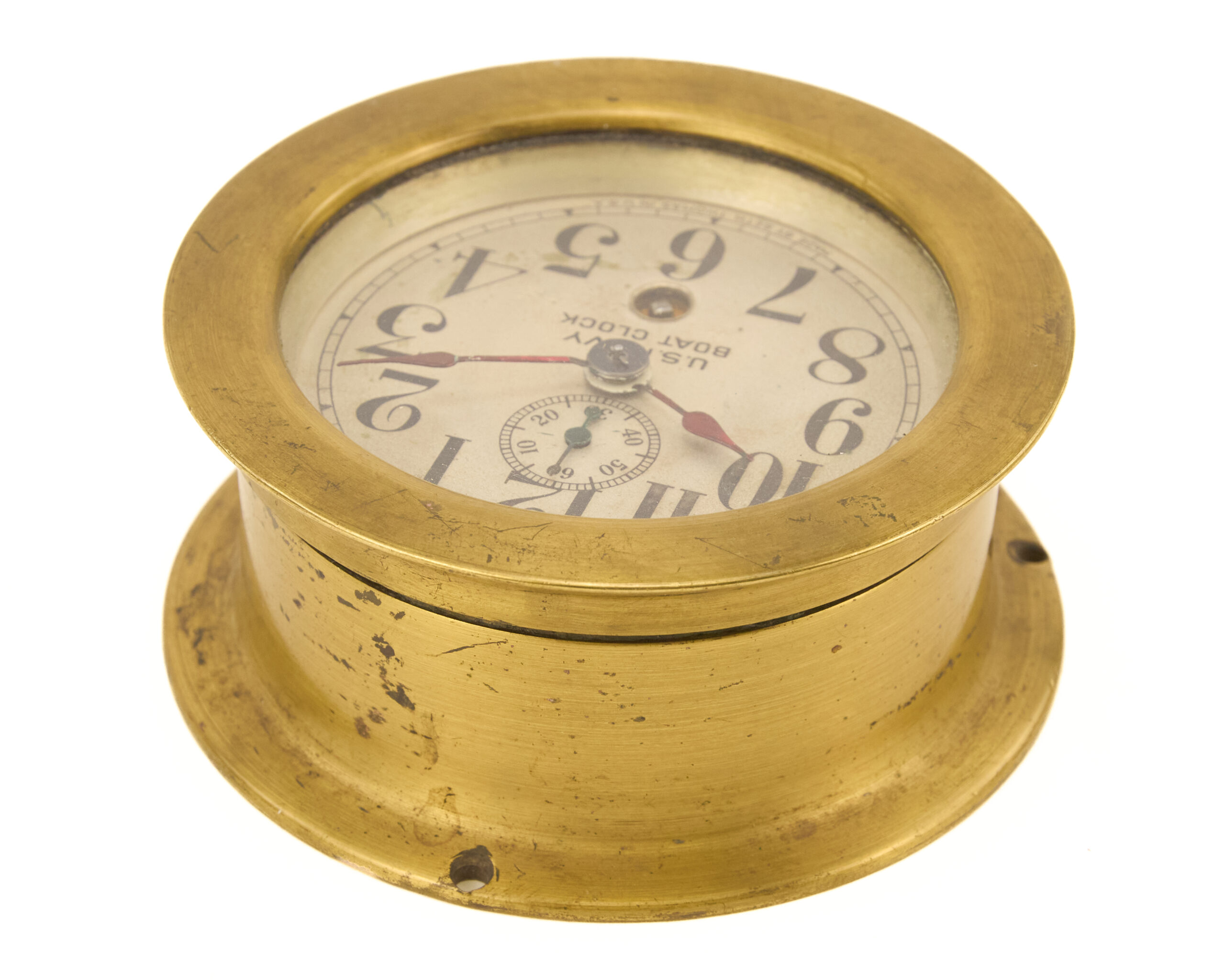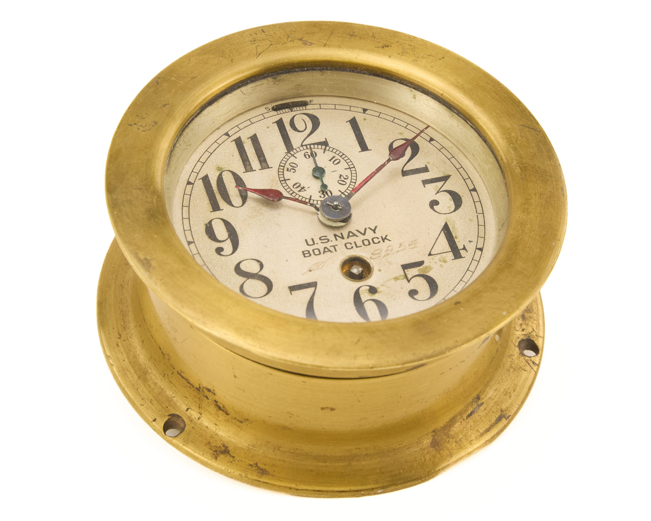 Seth Thomas was a primary supplier of precision timepieces to the U.S. military during World War II, and the Mark I boat clock was widely used on patrol craft, auxiliaries, and larger vessels where accurate time was essential for navigation, coordination, and operations. The robust brass construction and legible dial reflect the functional, no-nonsense design demanded by wartime naval requirements.