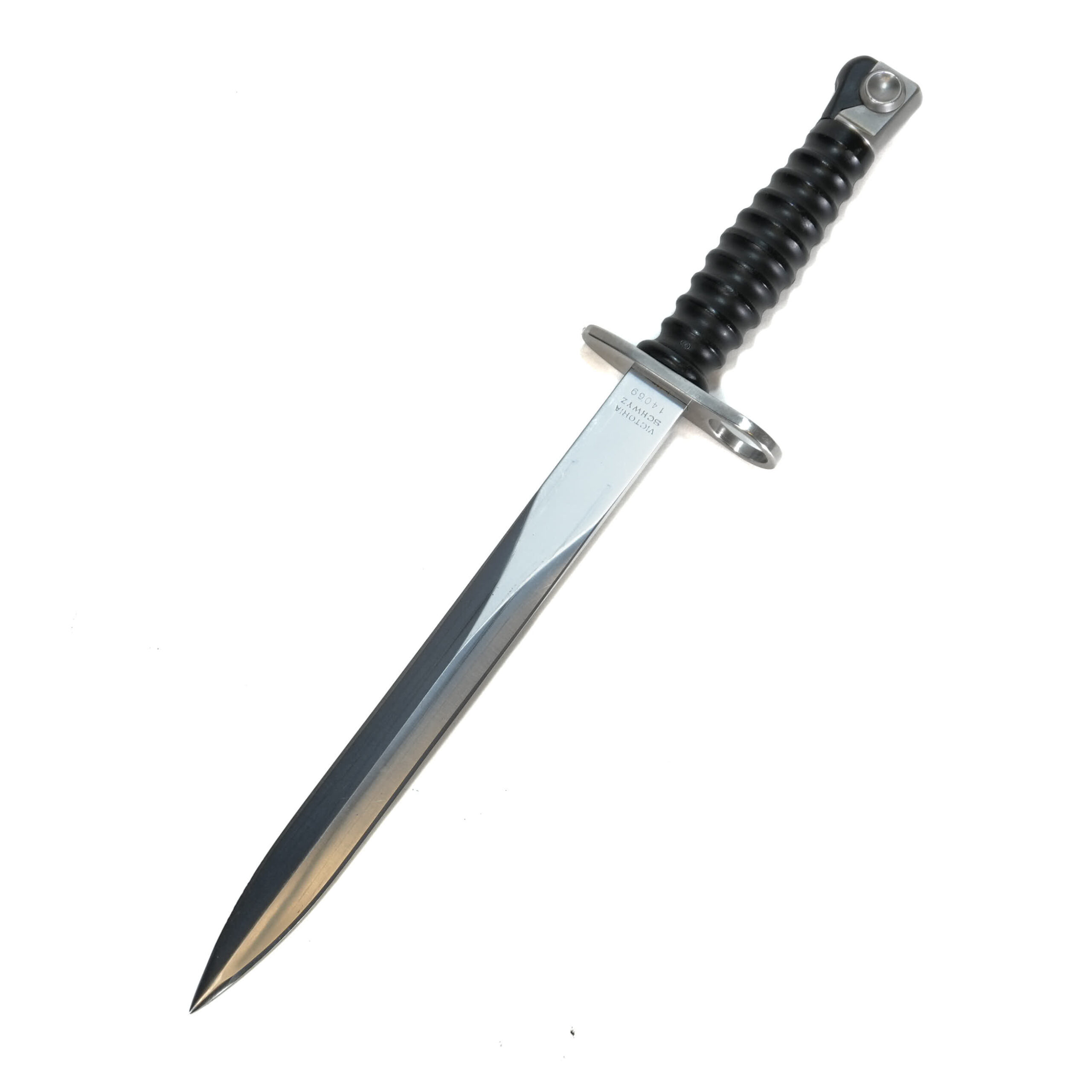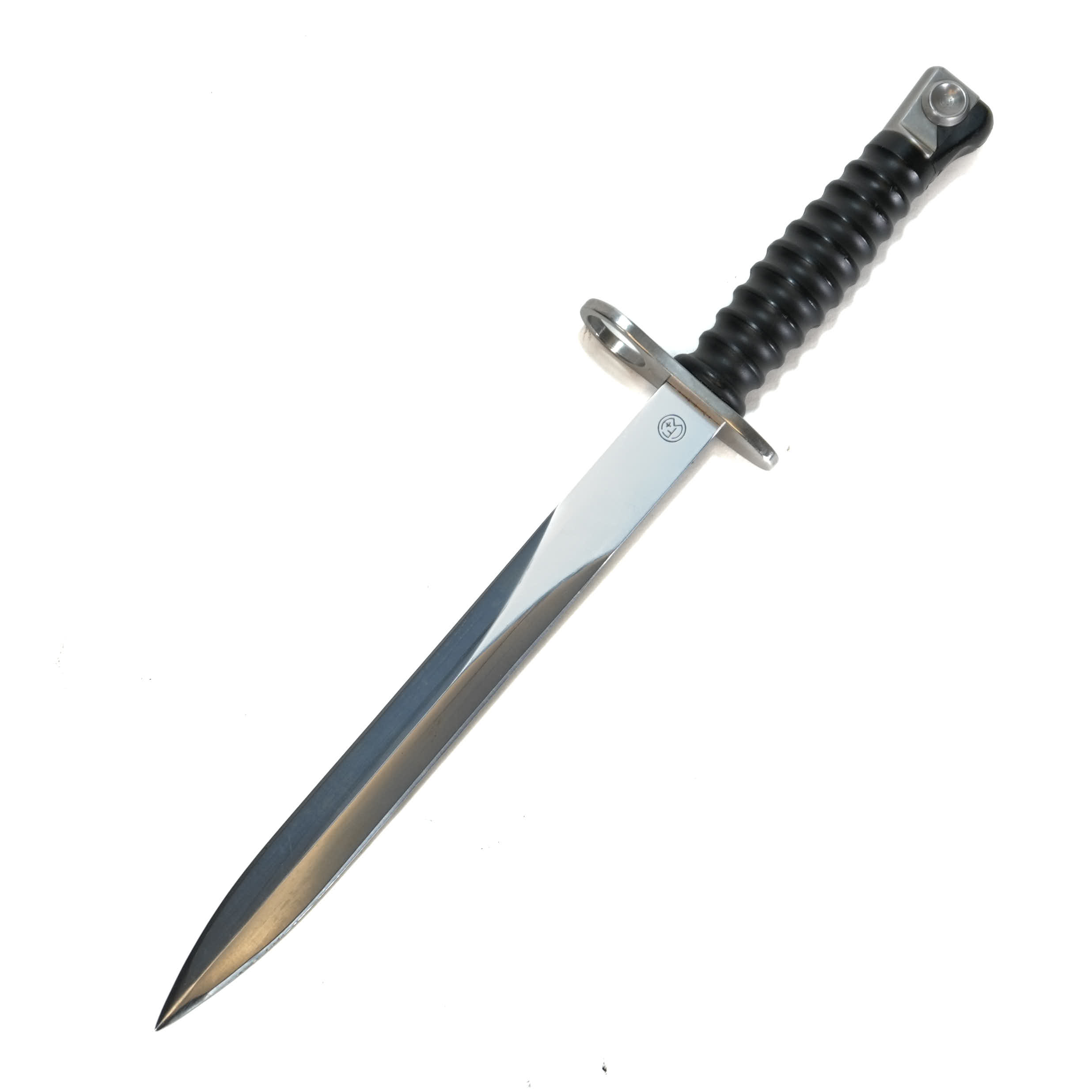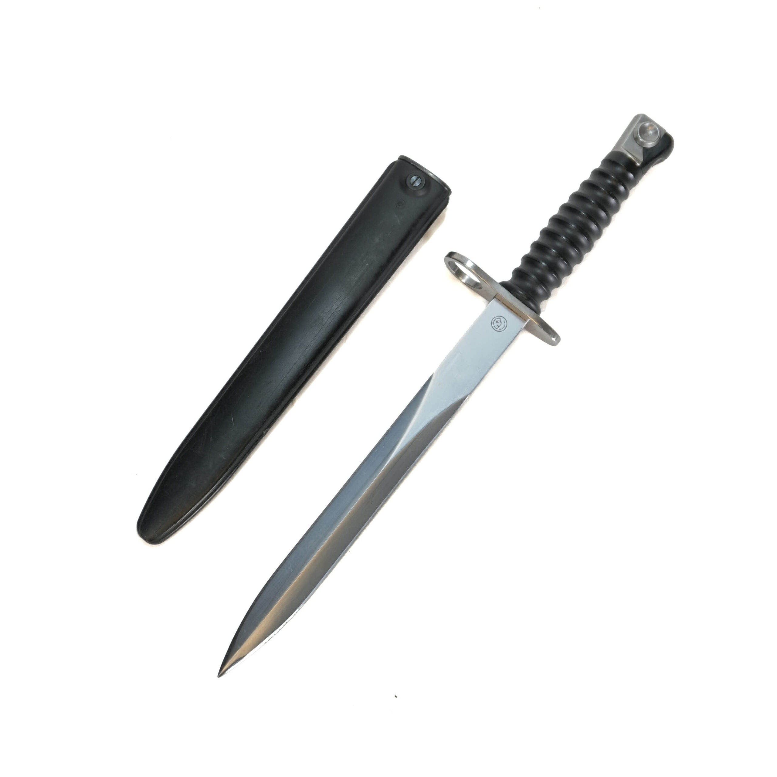 Up for sale is an original Swiss M1957 bayonet manufactured by Victoria Schwyz, complete with its original steel scabbard. Designed for the Stgw 57 (SIG 510) battle rifle, this bayonet is a fine example of Cold War-era Swiss engineering—combining utility, durability, and clean design.