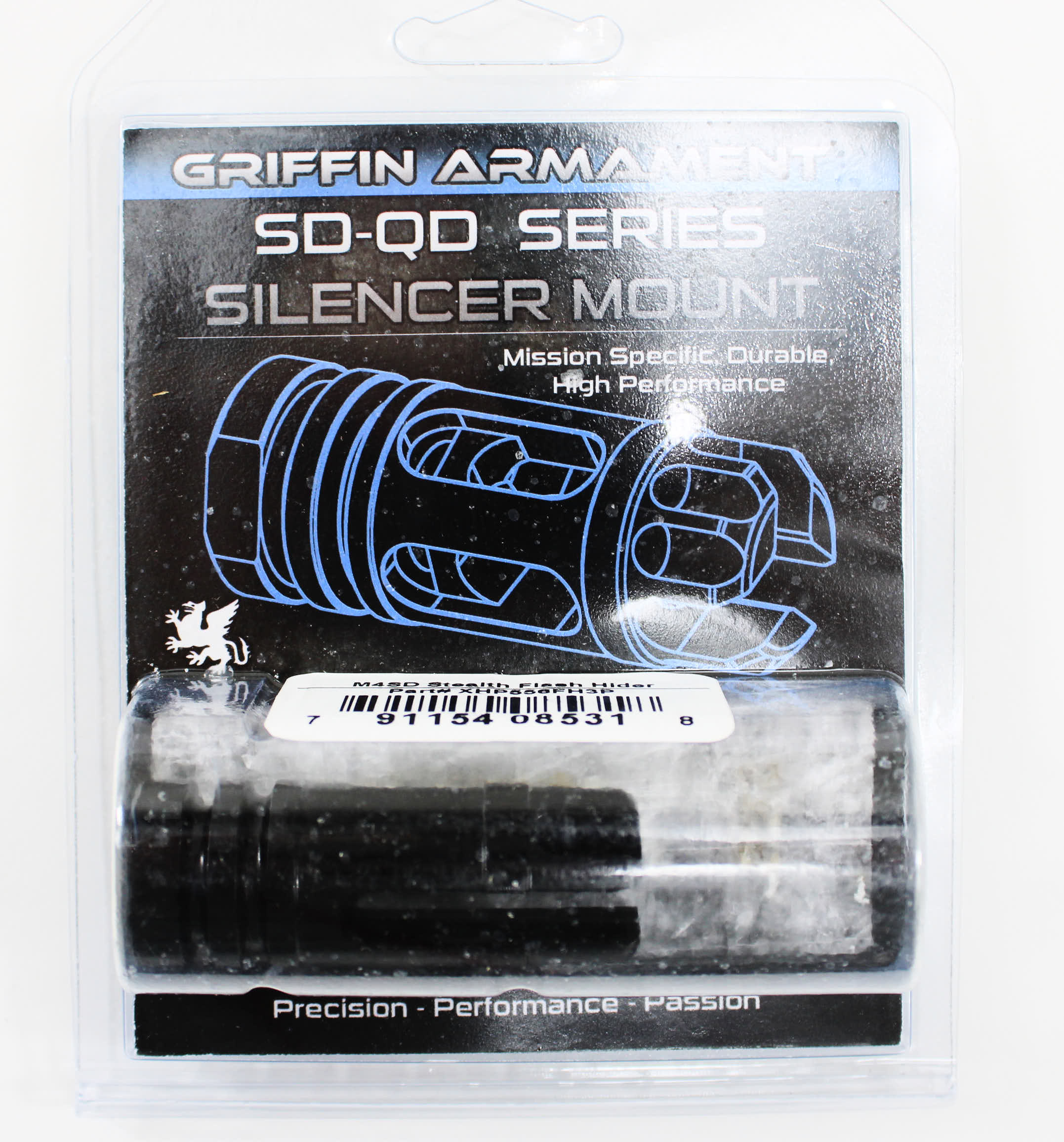 The Griffin Armament SD‑QD Series M4SD Stealth Flash Hider (Part No. XHP556FH3P) is a precision-engineered muzzle device tailored for shooters seeking superior flash suppression and suppressor integration. Designed from 17‑4 PH stainless steel with a durable black nitride finish, this 3‑prong flash hider offers exceptional performance without the familiar “ping” resonance of older designs. It features a quick-detach (QD) silencer mount and includes shims and an over-travel stop washer for accurate timing. Pre‑drilled for safe pin‑and‑weld installation on 14.5″ barrels to meet 16″ NFA compliance, this flash hider also excels as a standalone flash-reducing compensator, reducing muzzle climb while maintaining stability.
