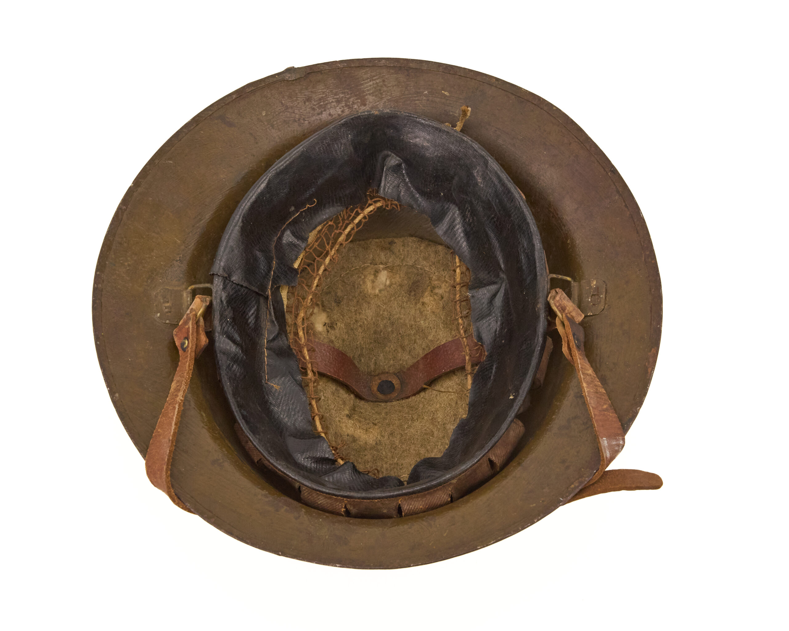Fitted with a correct 2nd pattern liner, the interior reflects the later World War I configuration used by U.S. forces. The liner components remain intact and appropriate to the helmet, contributing to the overall originality of the piece.