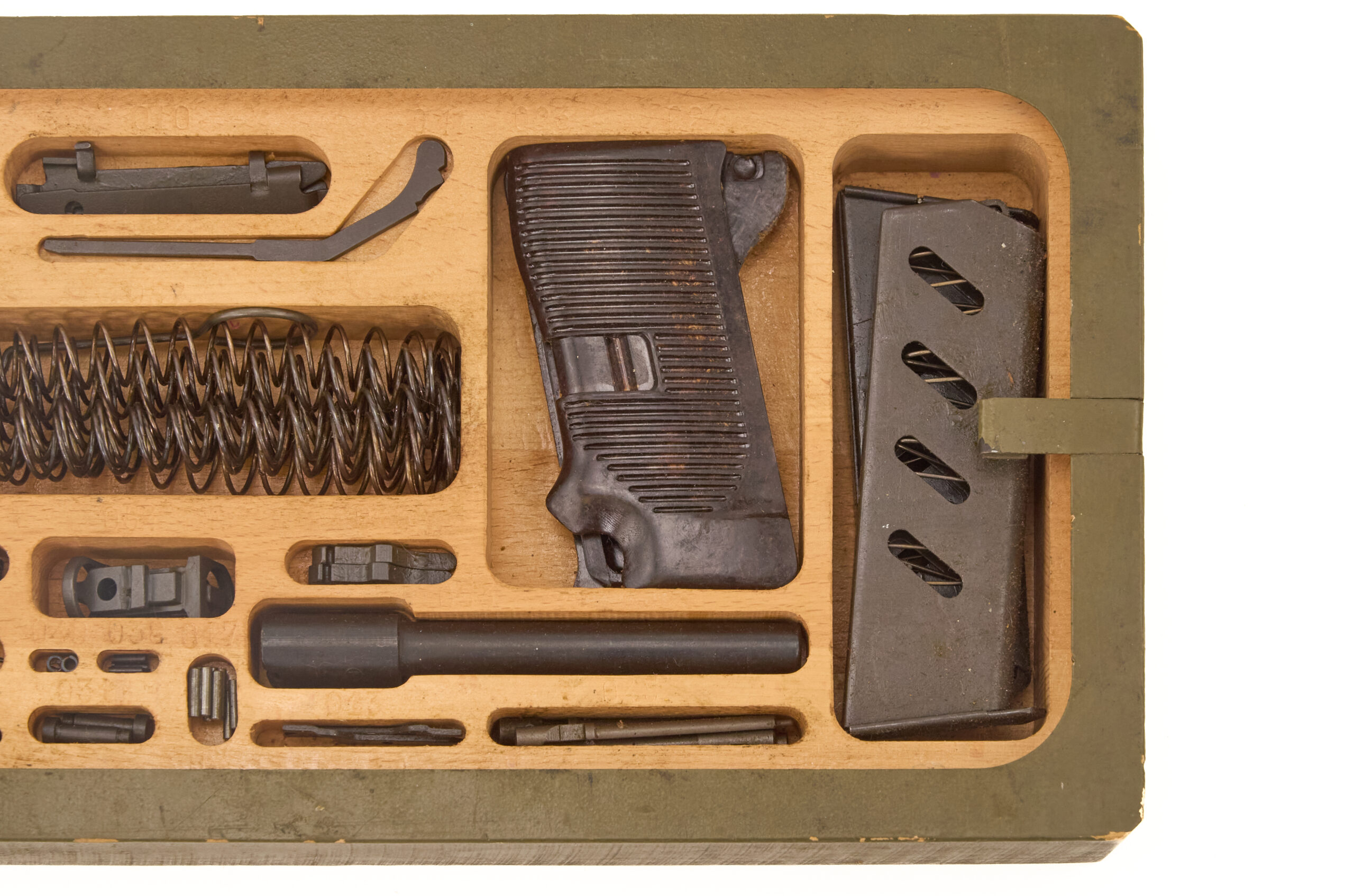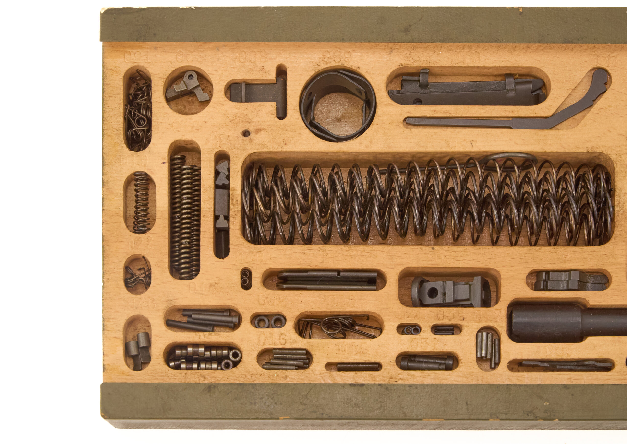 The spare parts themselves show very little wear. As a result, the kit appears to have seen little actual armorer use. Complete examples like this have become harder to find, especially with all parts present and the original box intact.