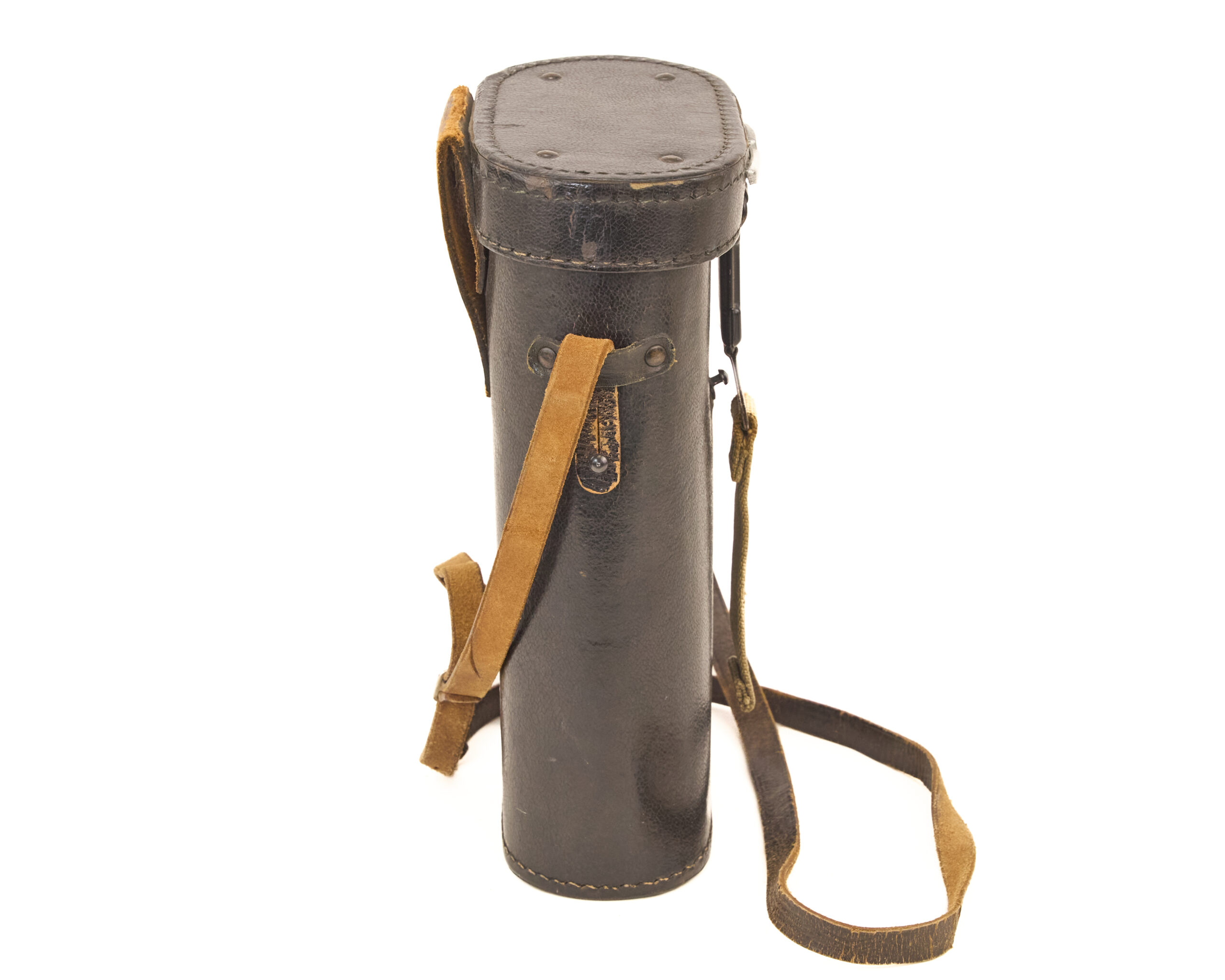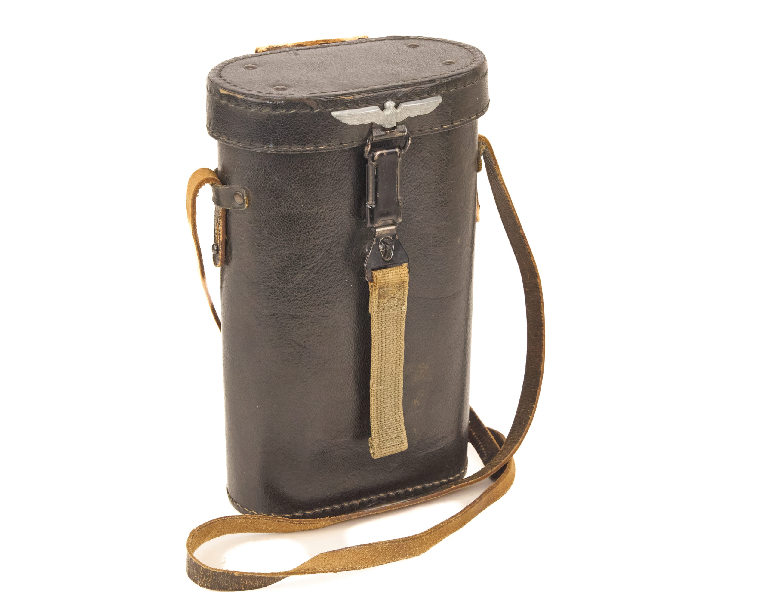 Hensoldt Wetzlar was one of the best-known German optical makers, and the 7×56 pattern is closely associated with large, high-quality military field glasses built for serious service use. This set stands out because it remains complete as a display group rather than as loose binoculars alone. The clear glass, strong mechanical function, original leather case, and surviving straps all help preserve the look of a proper service-carried optics set.