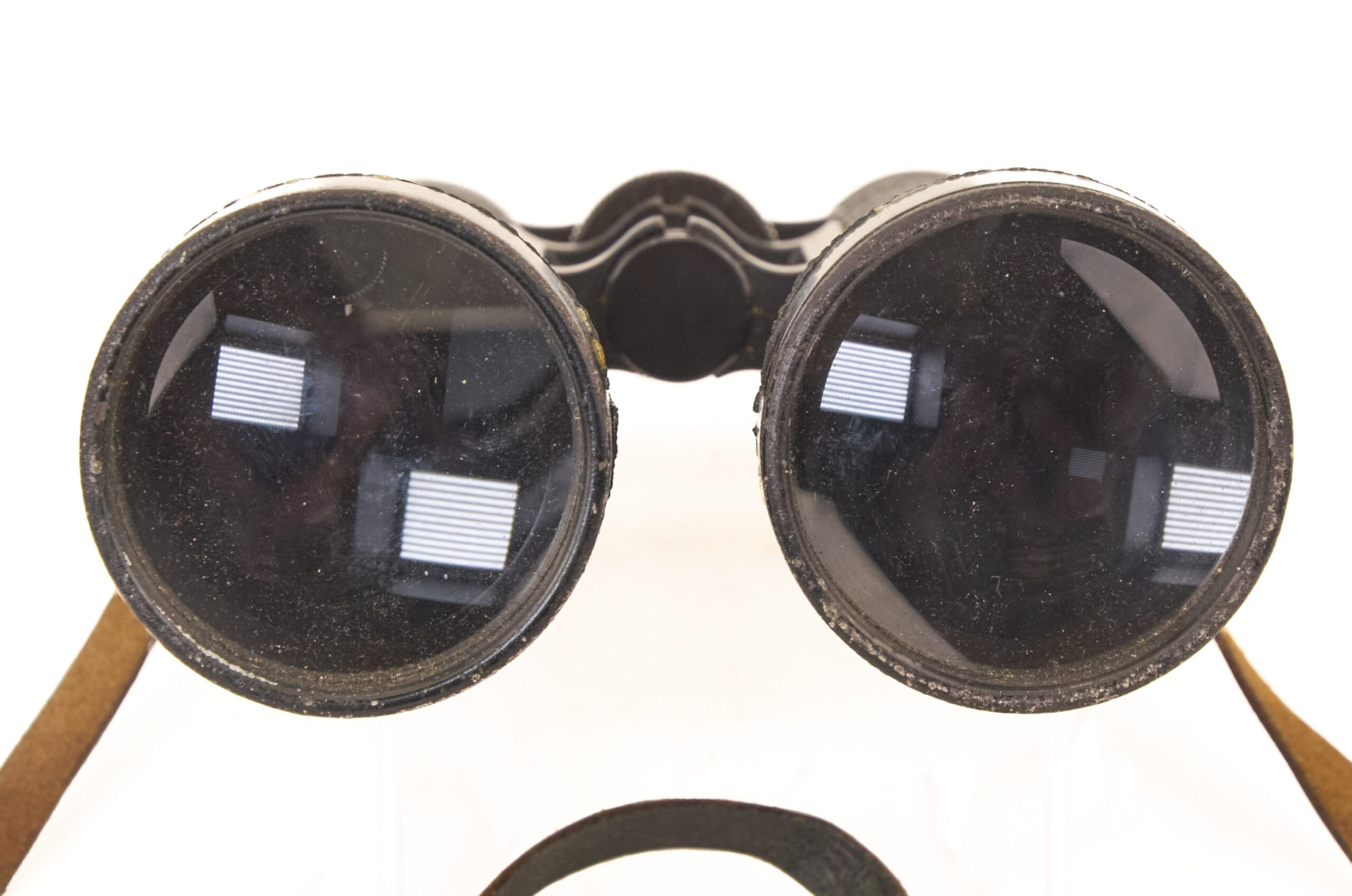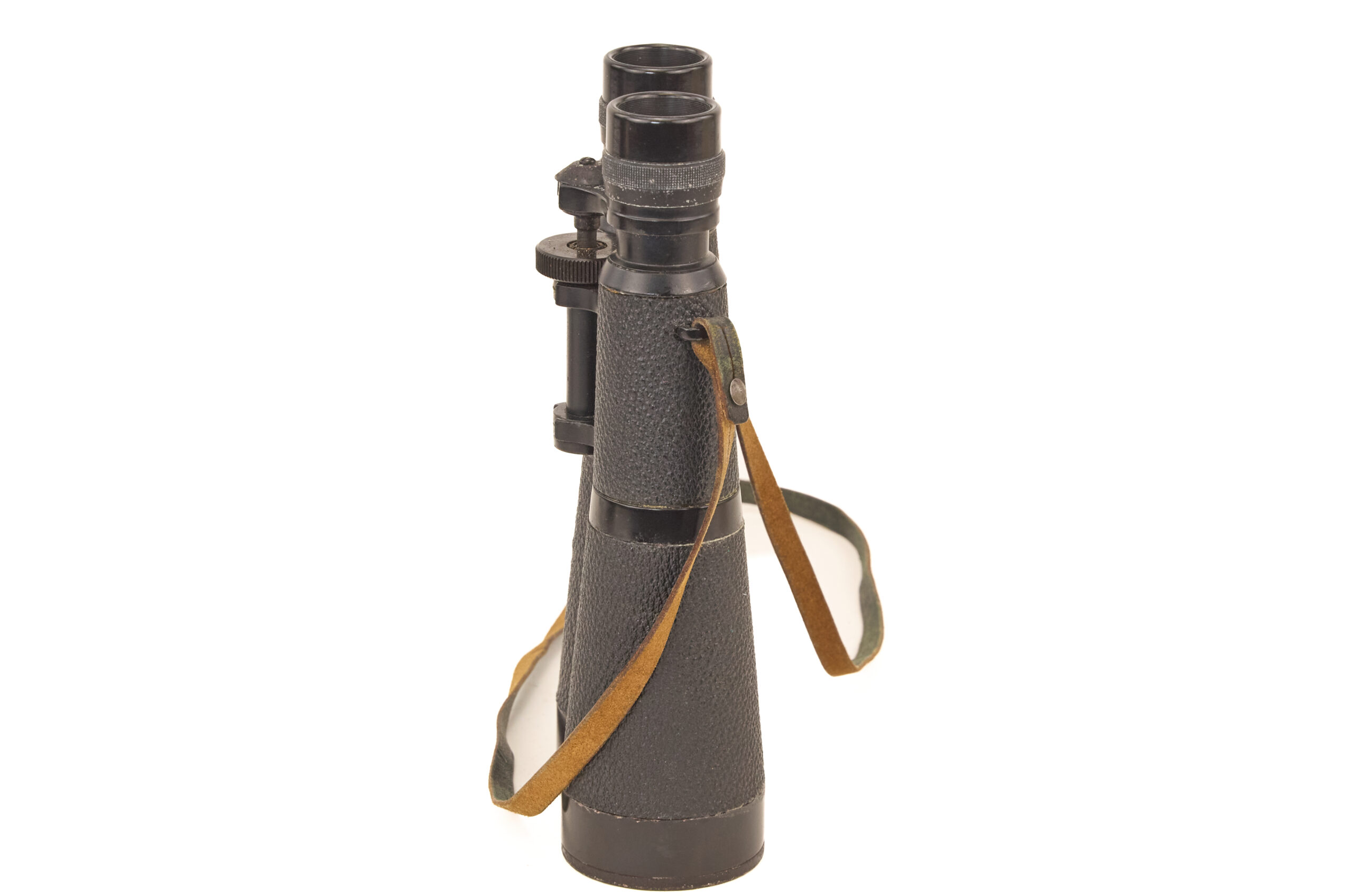 The 7×56 format itself is part of the appeal. It reflects an optics philosophy that favored a bright, practical image and real field usability over simple compactness. Binoculars of this size were not casual pocket pieces. They were serious service instruments, meant to be carried in a case and used deliberately. When they survive as a complete set with case and straps, they tell a fuller story of how military optics were actually issued, protected, and carried.