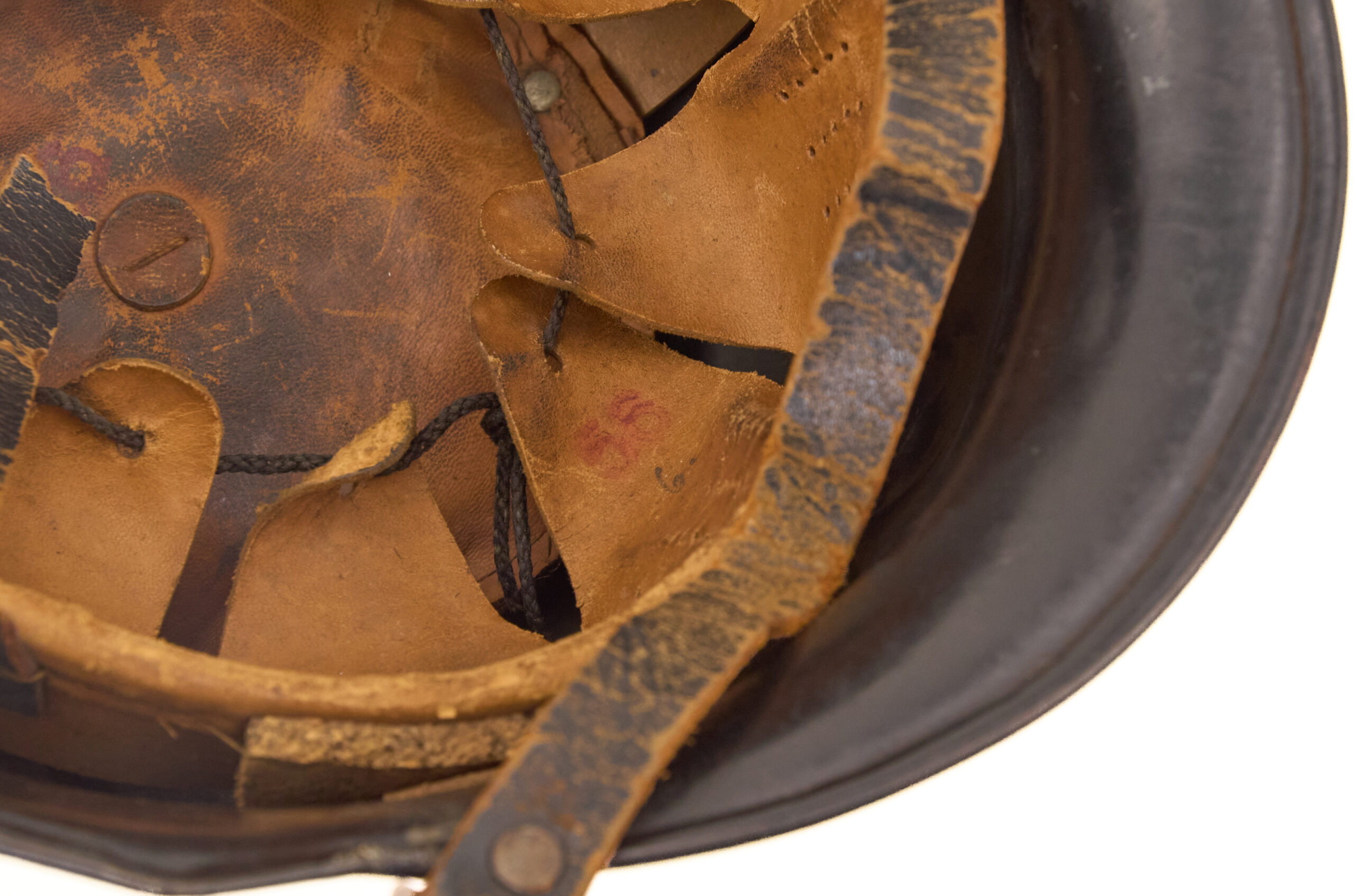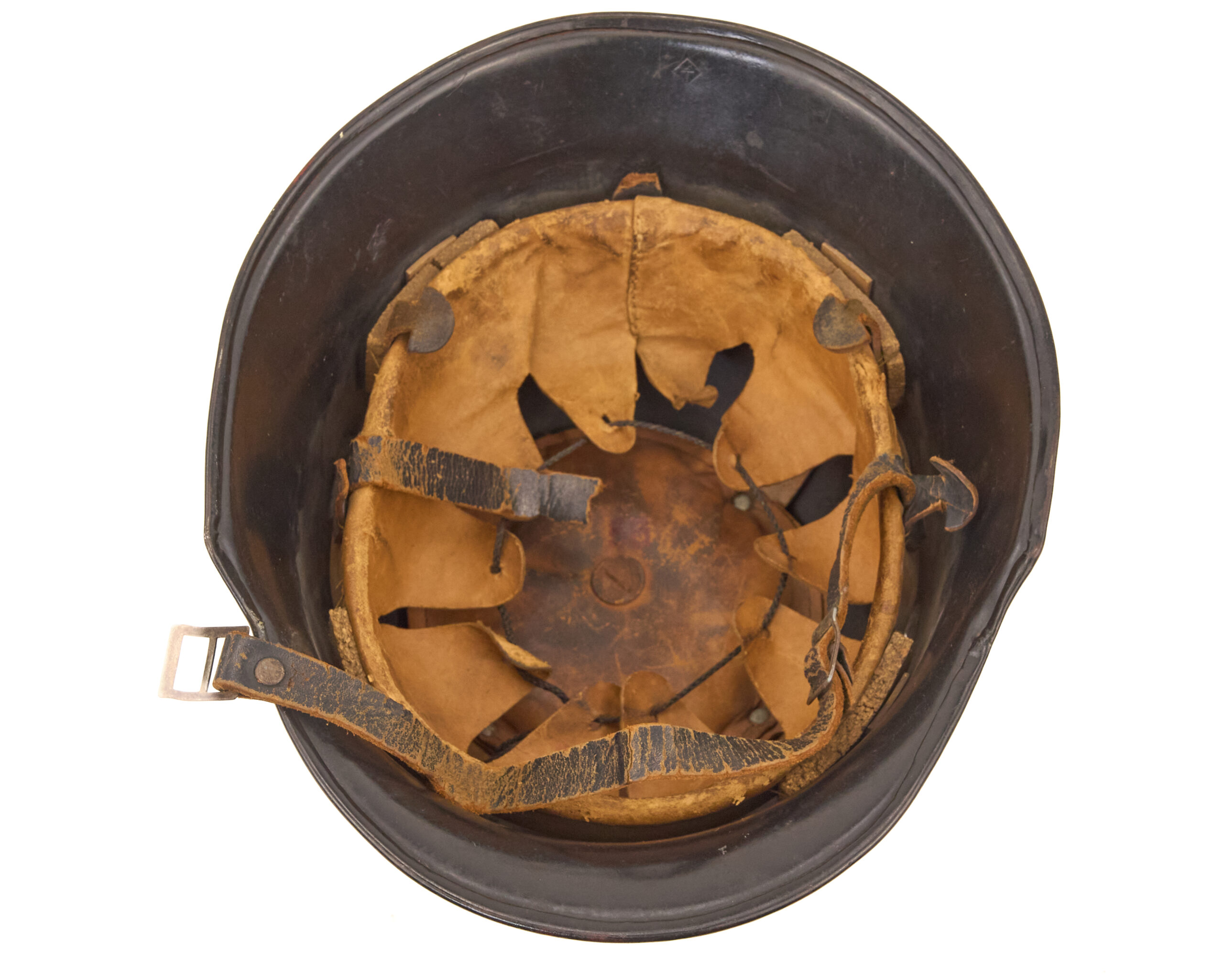 That is part of what makes a Fire Police helmet compelling. It connects to a branch that operated in the overlap between public safety, emergency response, and state police organization. During the war years, those functions became more important as air raids, urban damage, and home front emergency measures increased. A surviving M34 Feuerschutzpolizei helmet reflects that world directly. It was part of the equipment of men expected to respond to fire, damage, and disruption under wartime conditions.
