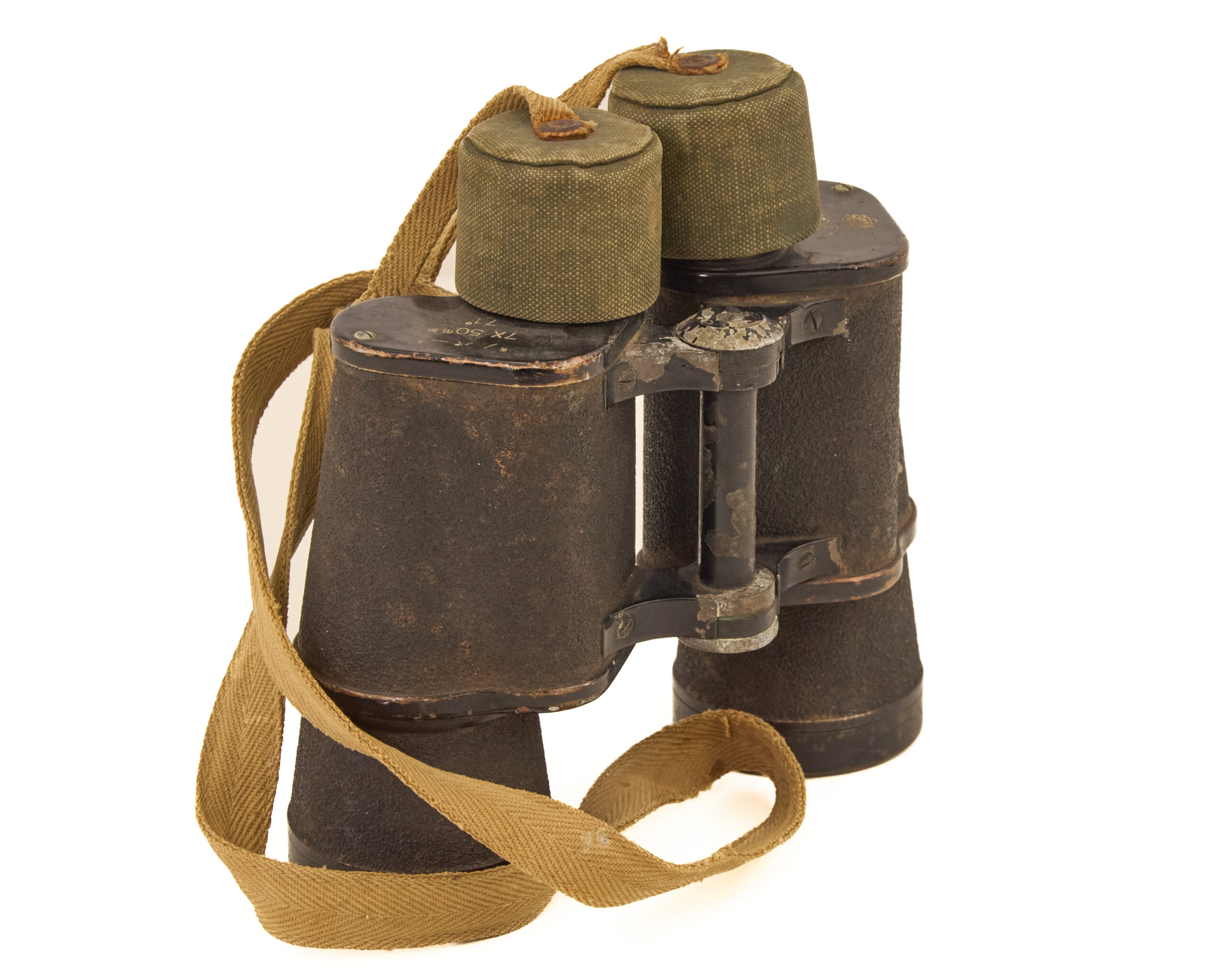 This is a genuine WWII-era Imperial Japanese Army 7×50 binocular set by Nippon Kogaku, featuring original accessories, clear military markings, and authentic service wear. Although missing one eyepiece standoff, it remains a historically important and highly collectible example of Japanese wartime optical equipment, suitable for advanced militaria collections or museum-style displays.