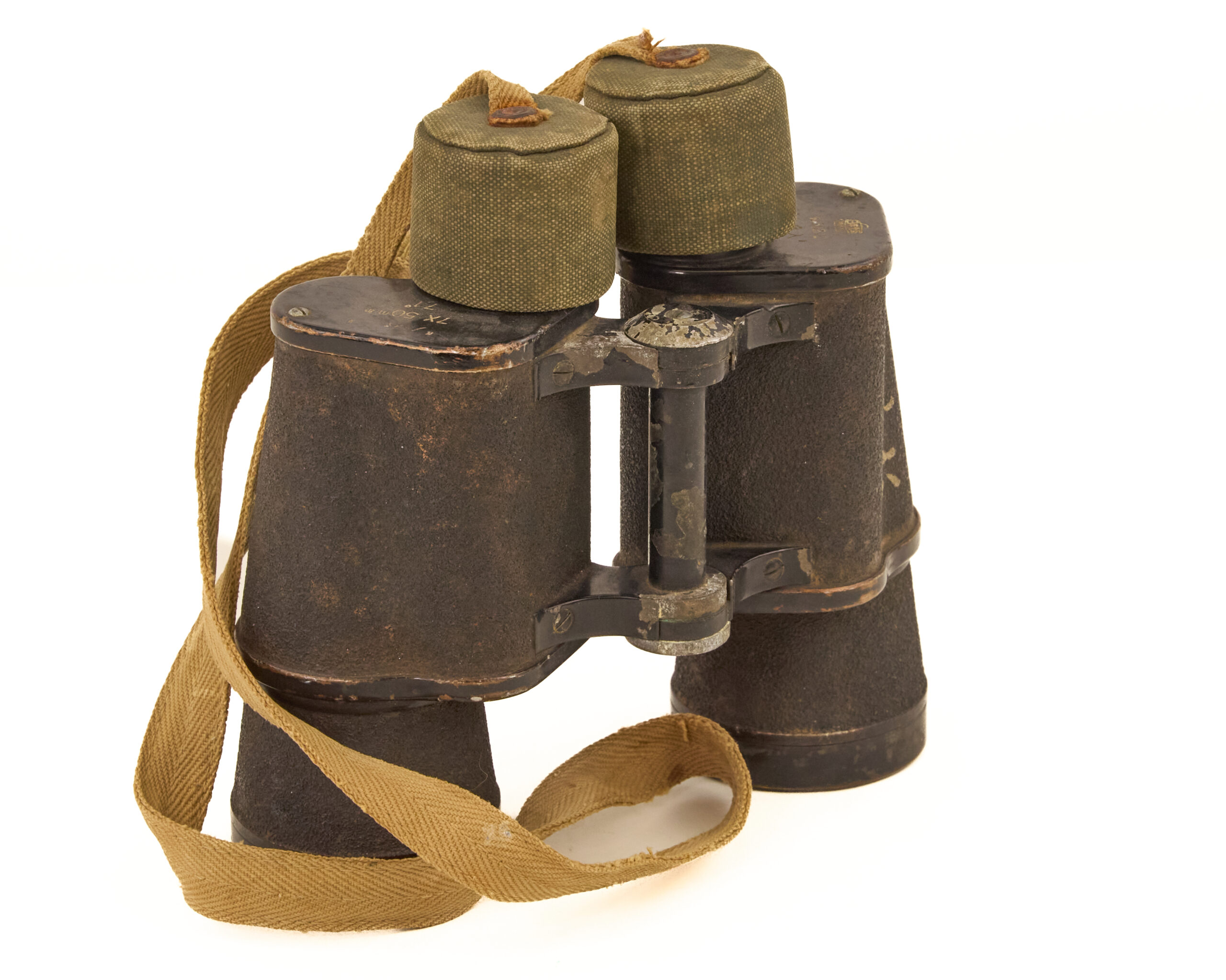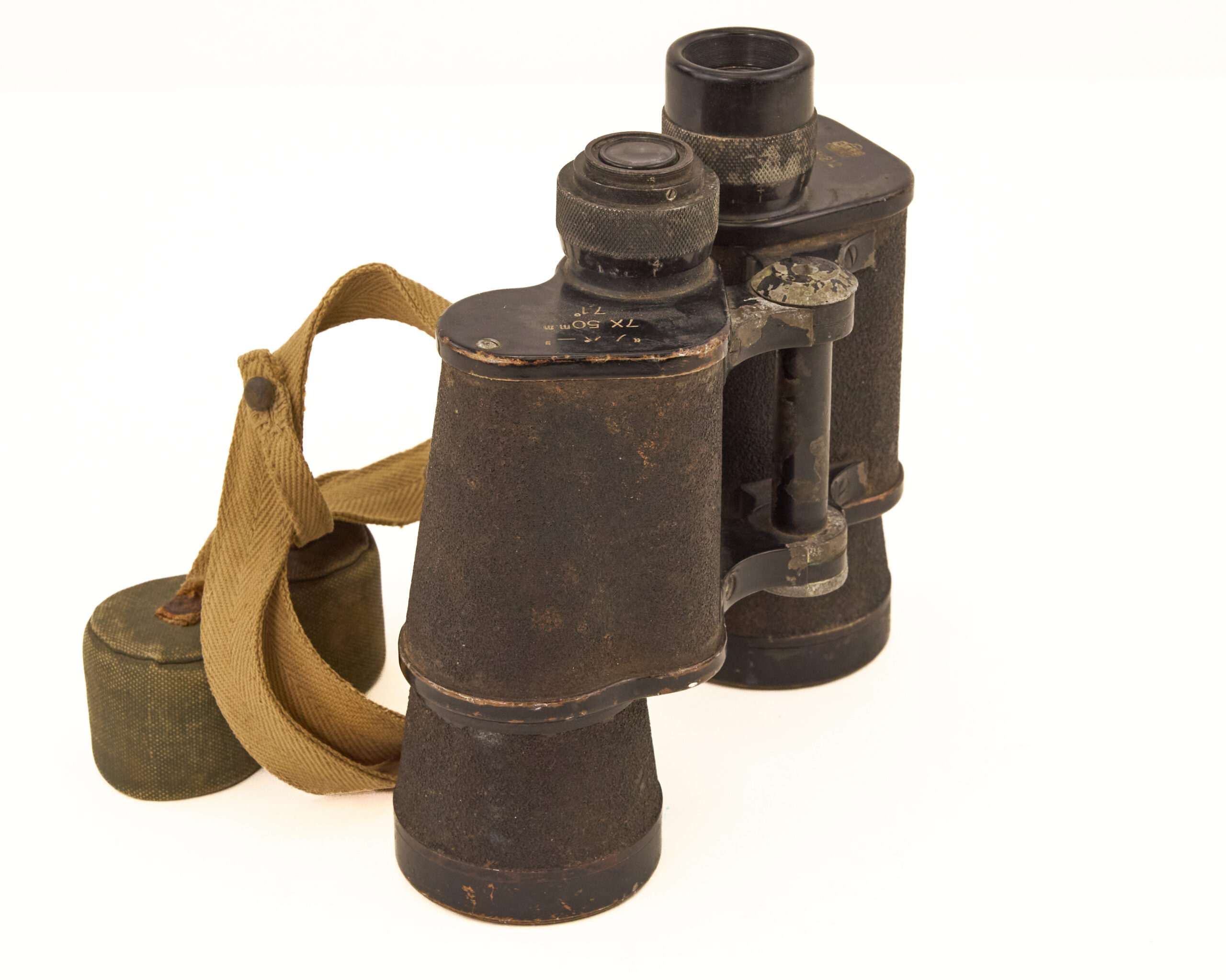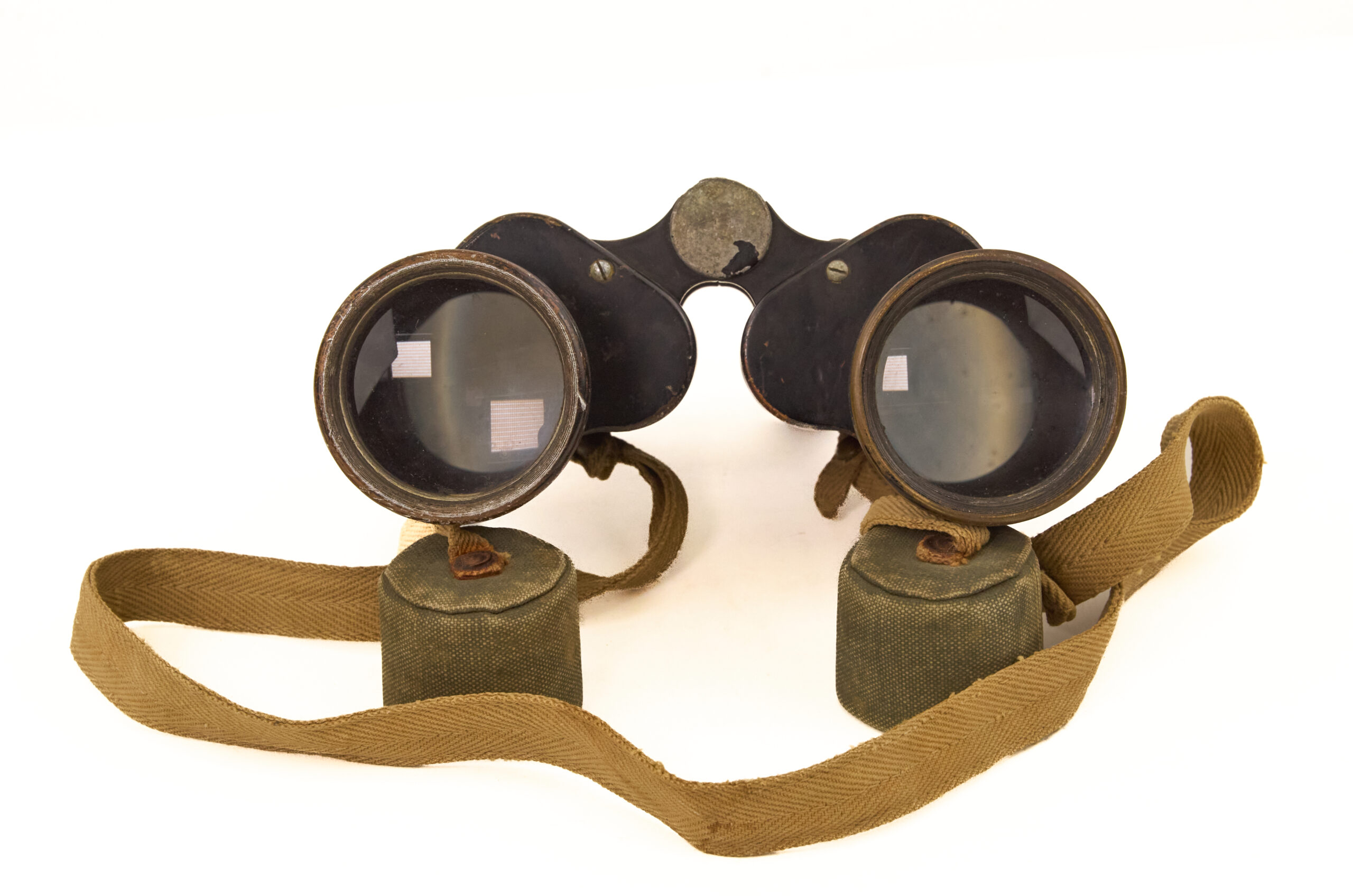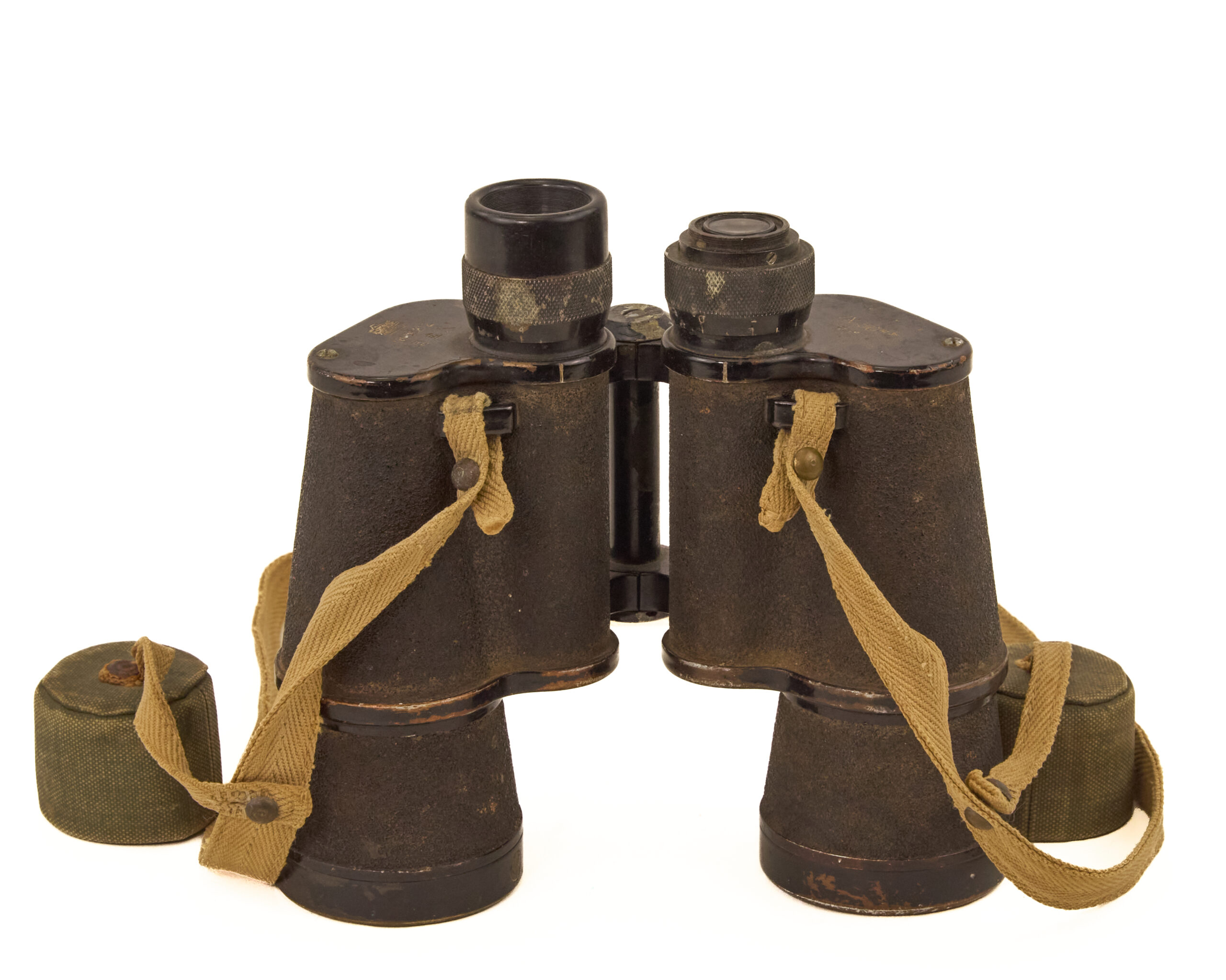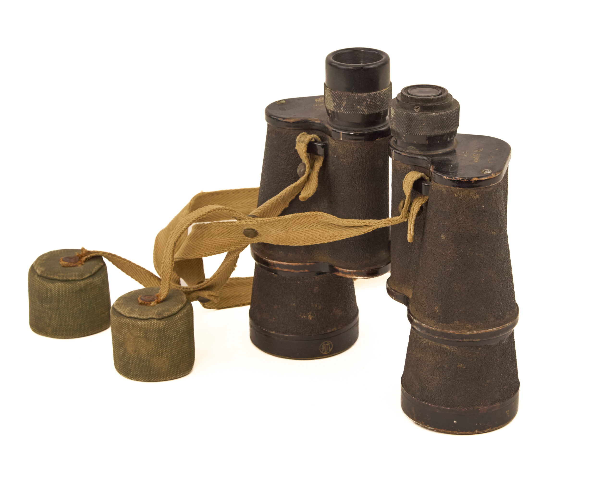 Despite wear, the binoculars retain their essential components and original accessories, making them a desirable and honest service-used artifact.