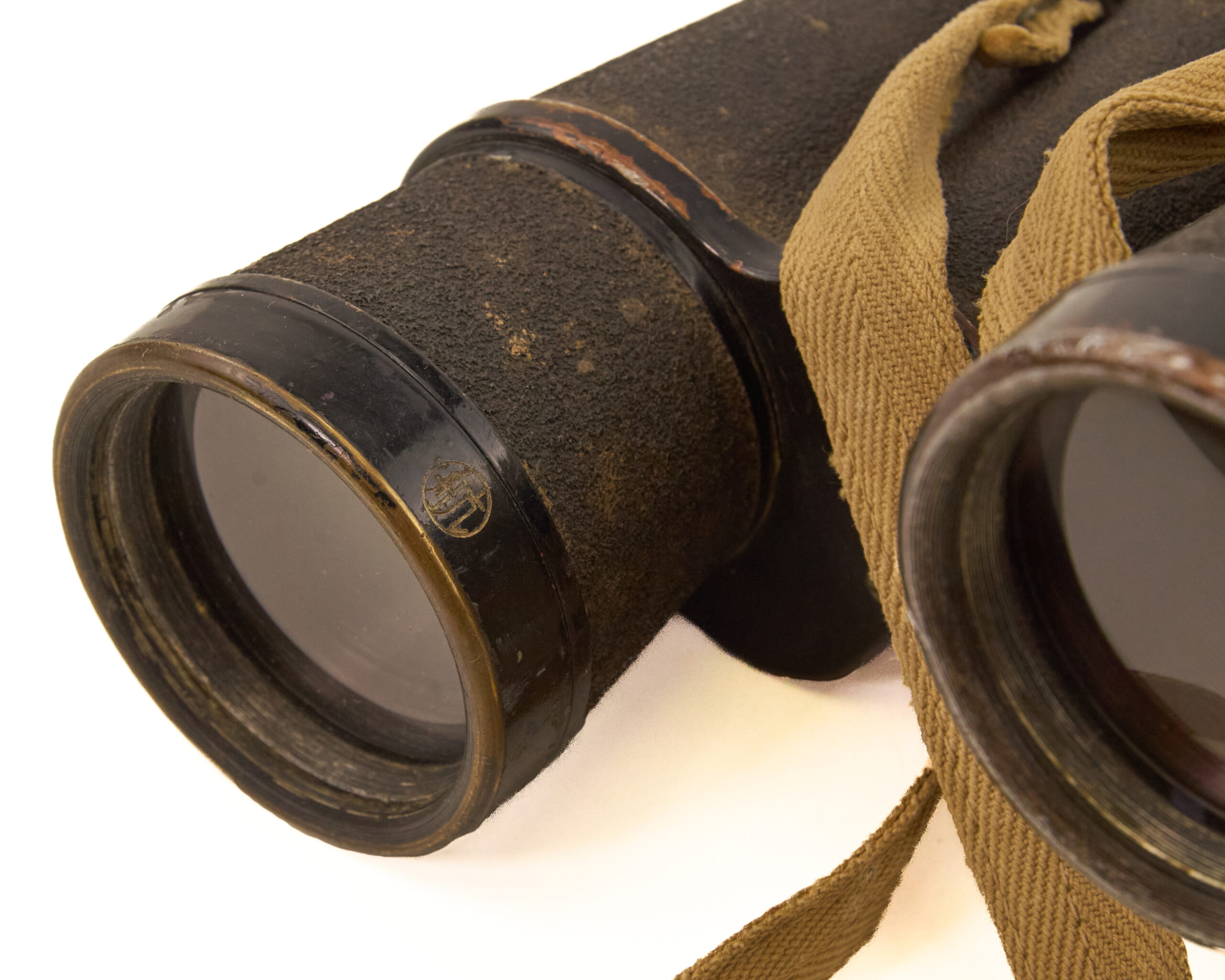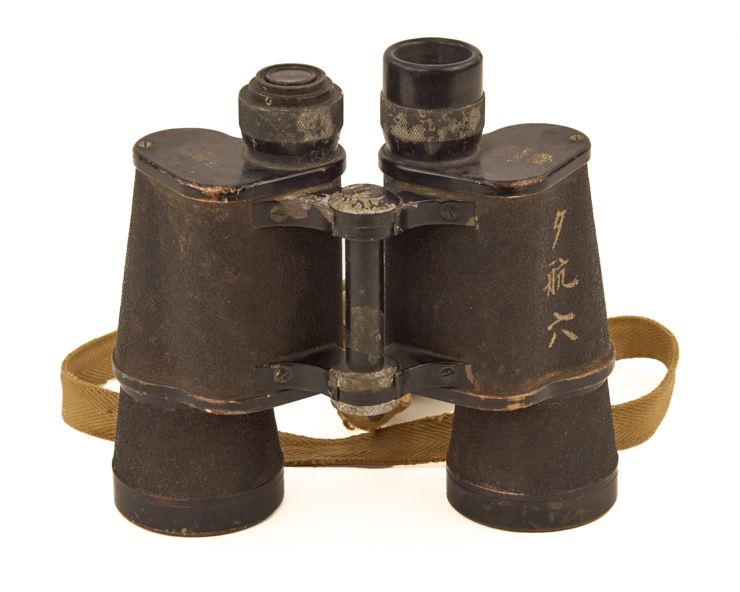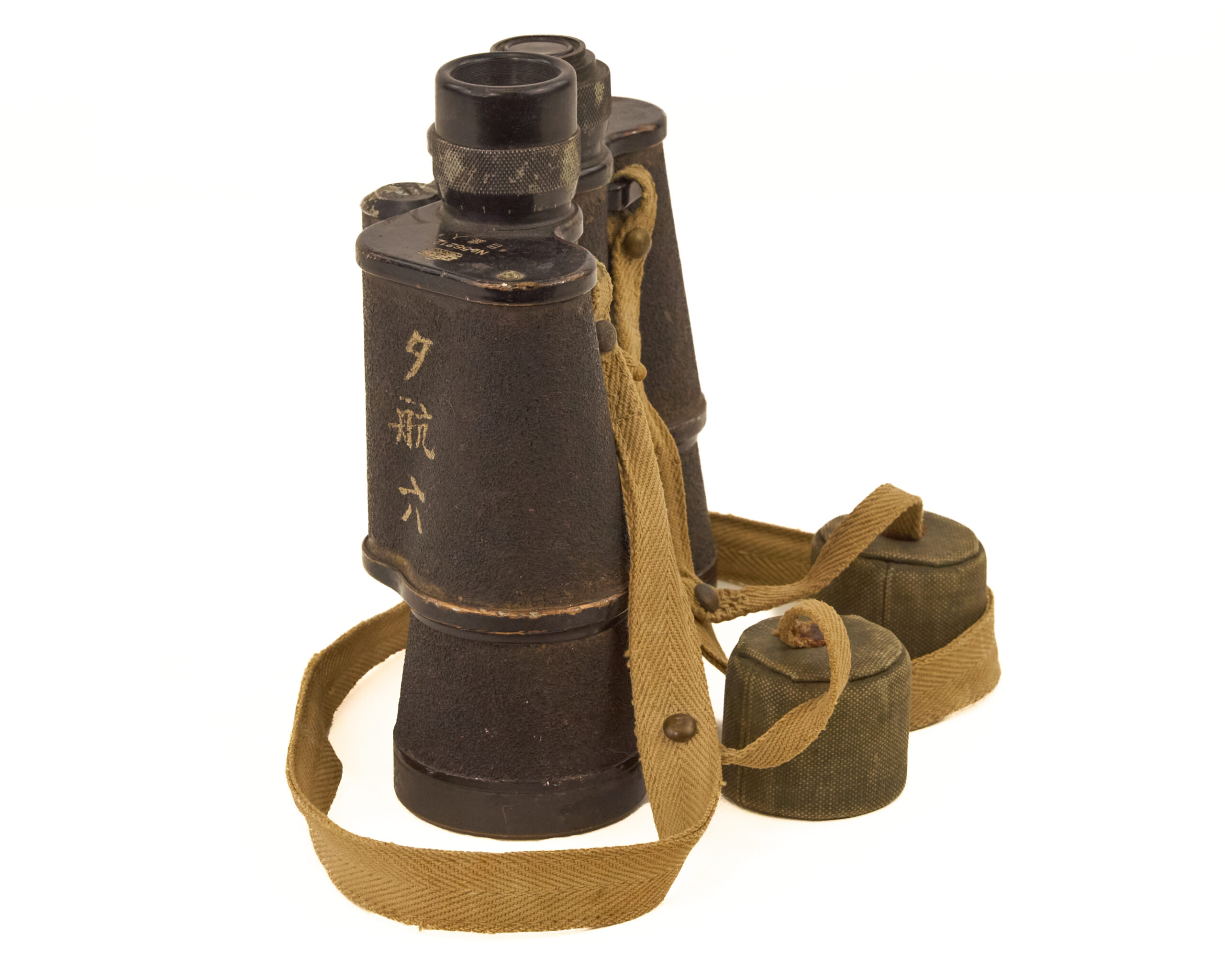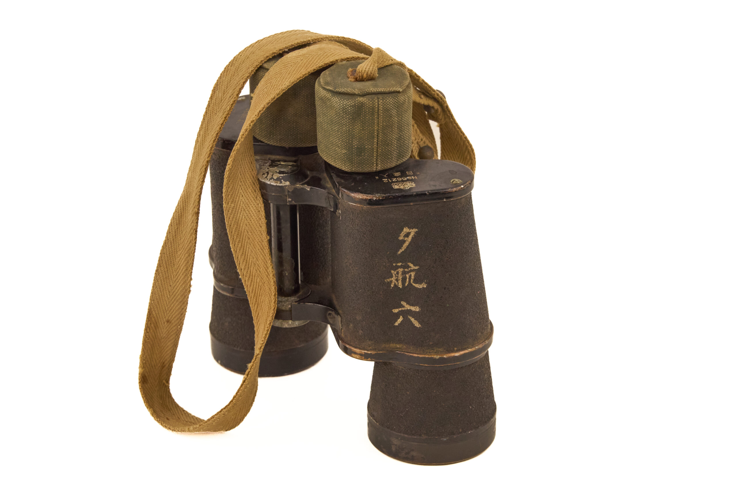 These binoculars were issued for use by personnel of the Imperial Japanese Army, primarily for observation, reconnaissance, artillery spotting, and battlefield coordination. The body bears the marking “夕航六” (Yu Kō Roku / “Evening Voyage Six”), which is believed to represent a military inspection, batch, or acceptance marking associated with naval or transport-related distribution channels during the war.
