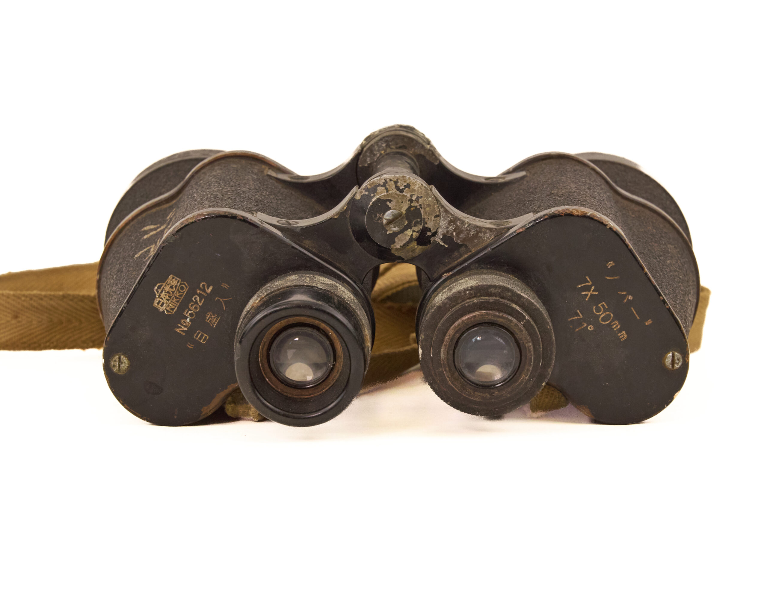 An authentic pair of WWII Imperial Japanese Army 7×50 military binoculars, manufactured by Nippon Kogaku (branded “NIKKO / 日本光学”), the predecessor of modern Nikon and one of Japan’s most important wartime optical producers.